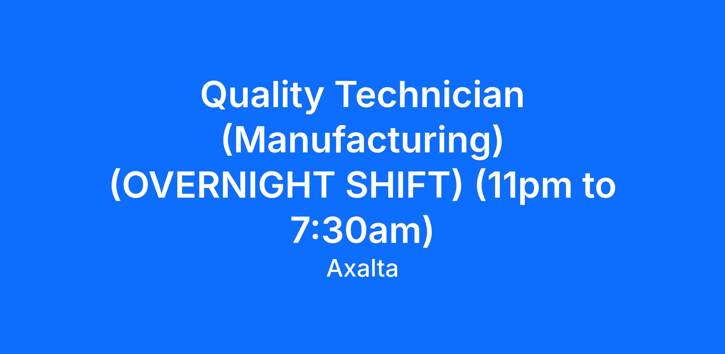 Job Title: Quality Technician (Manufacturing) (OVERNIGHT SHIFT)