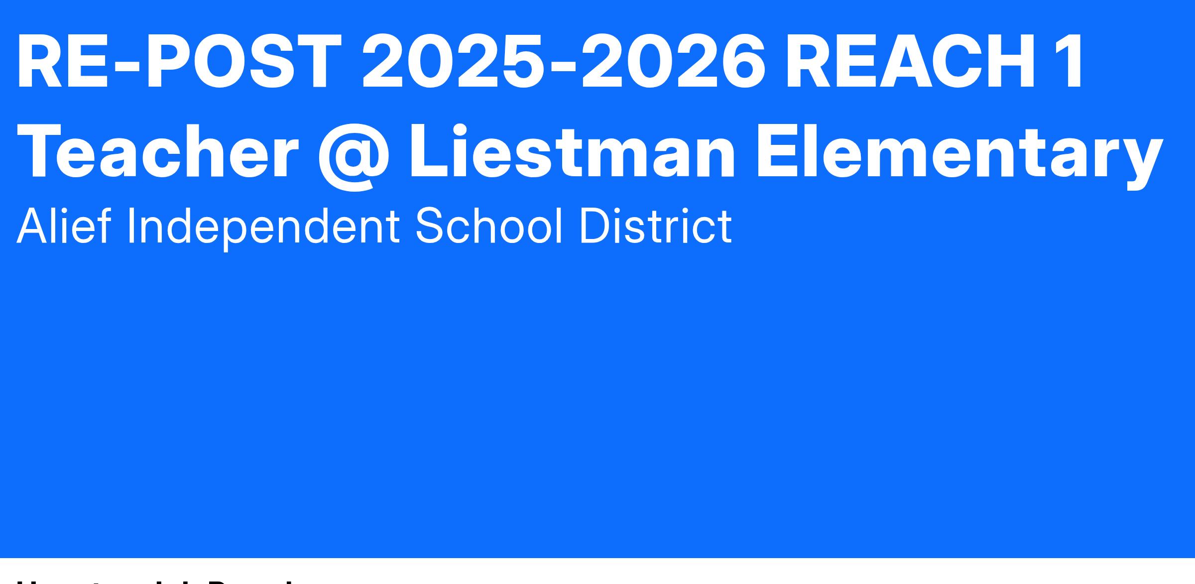 RE-POST 2025-2026 REACH 1 Teacher @ Liestman Elementary