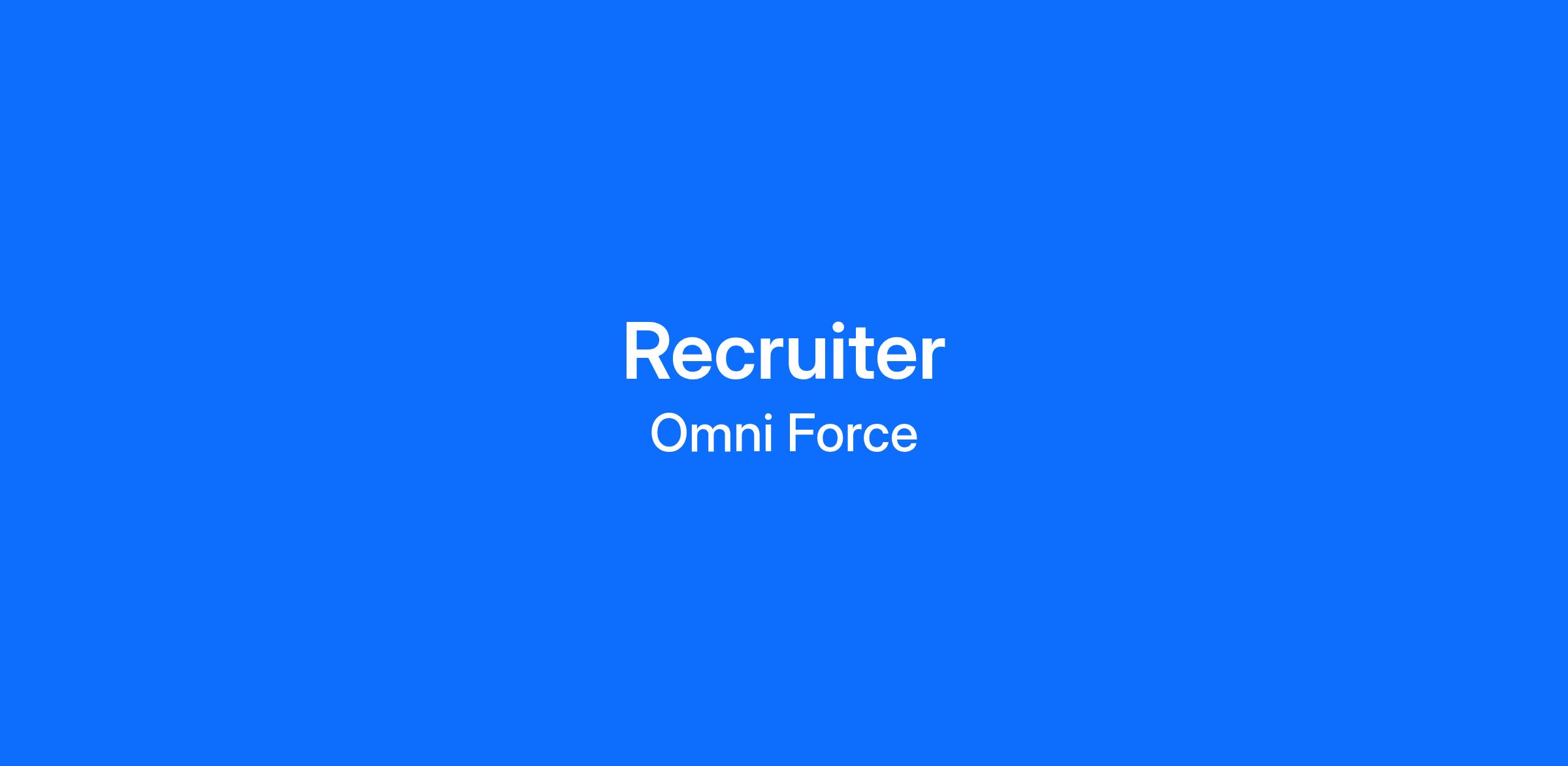 We are a corporate recruiting agency that specializes in identifying top talent across a wide spectrum of skill sets and industries. Our goal at OmniForce is to provide an environment that will help you develop into a top-performing recruiter. The relationships that we create with our clients, candidates, and colleagues become the foundation for growth that leads us to success in the future. We are looking to add a Recruiter to our team!