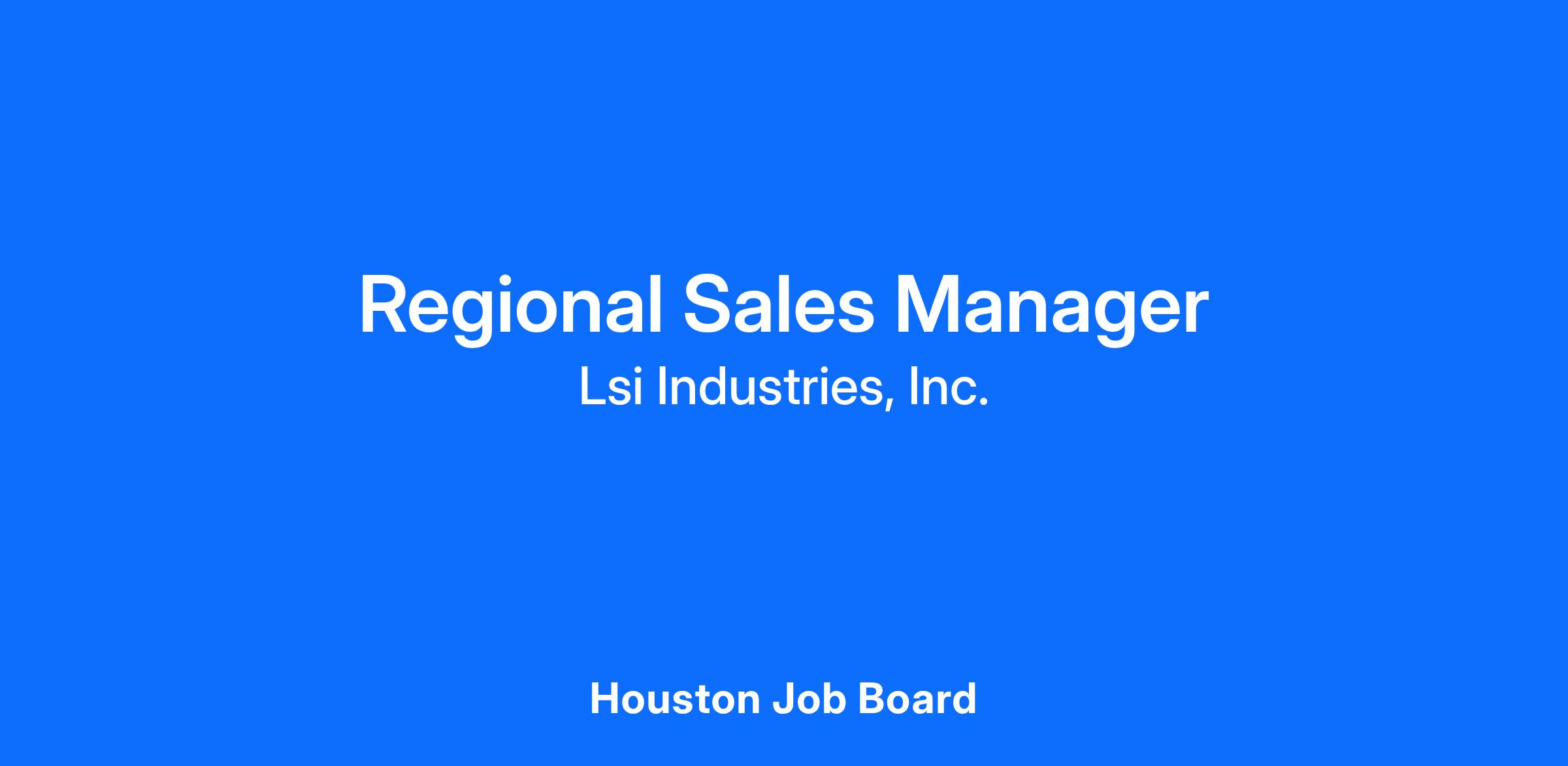 We are looking for a Regional Sales Manager to support our team at our location in Houston, Texas.