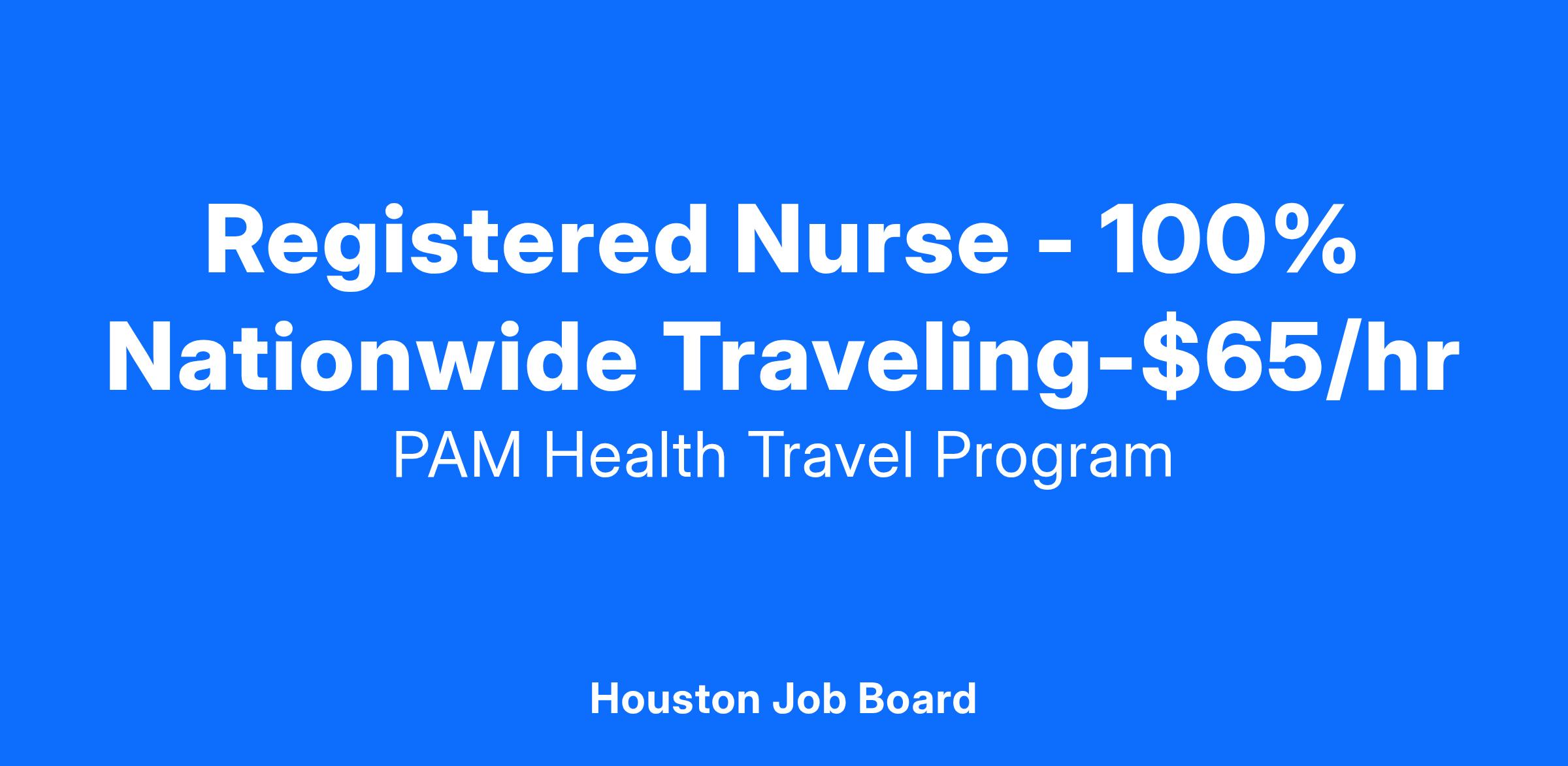 Nationwide Registered Nurse (RN) 100% Nationwide Travel-$65/hr position to any of our hospitals nationwide Benefits eligible opportunity and travel expenses reimbursed by company