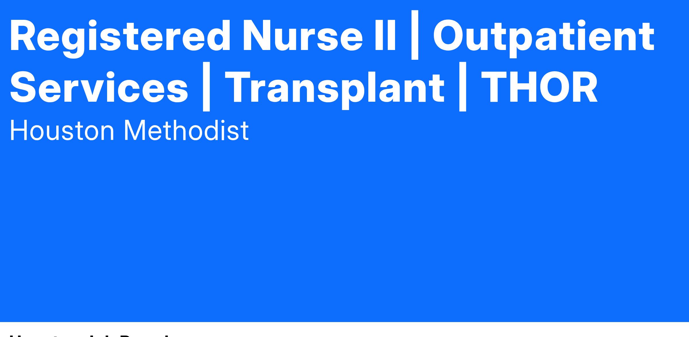 Registered Nurse II | Outpatient Services | Transplant | THOR
