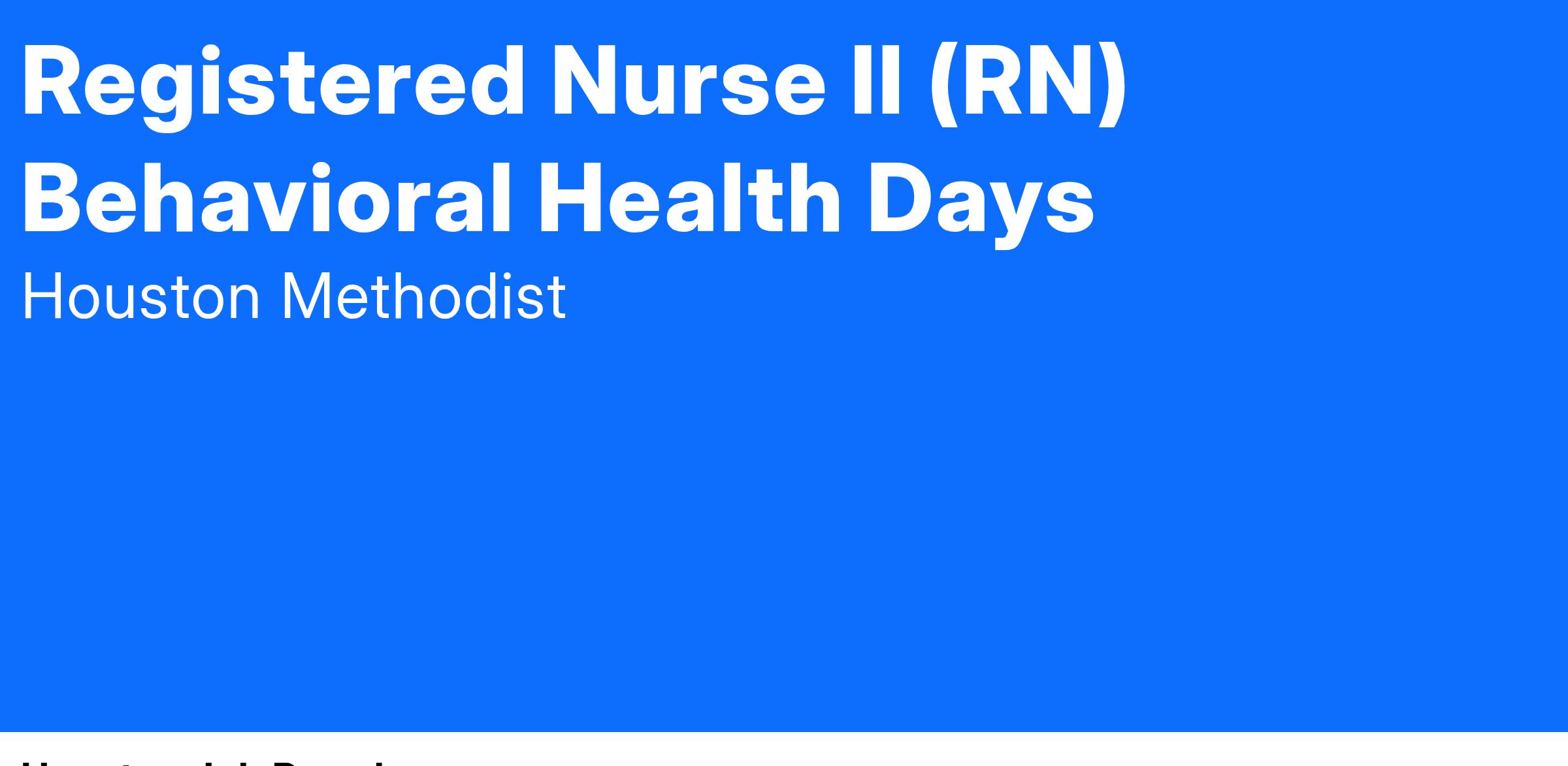Registered Nurse II (RN) Behavioral Health Days