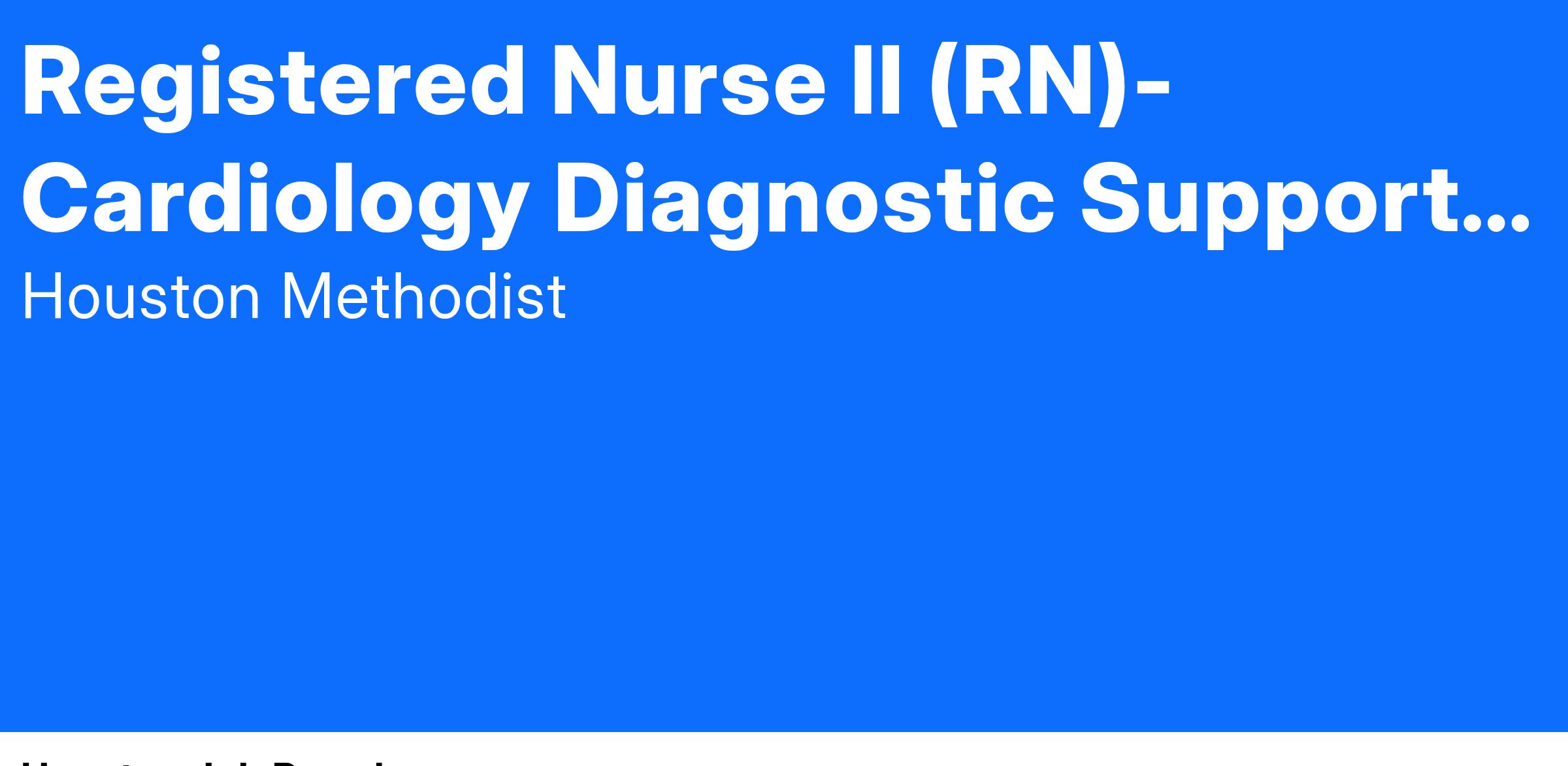 Registered Nurse II (RN)- Cardiology Diagnostic Support- Evenings