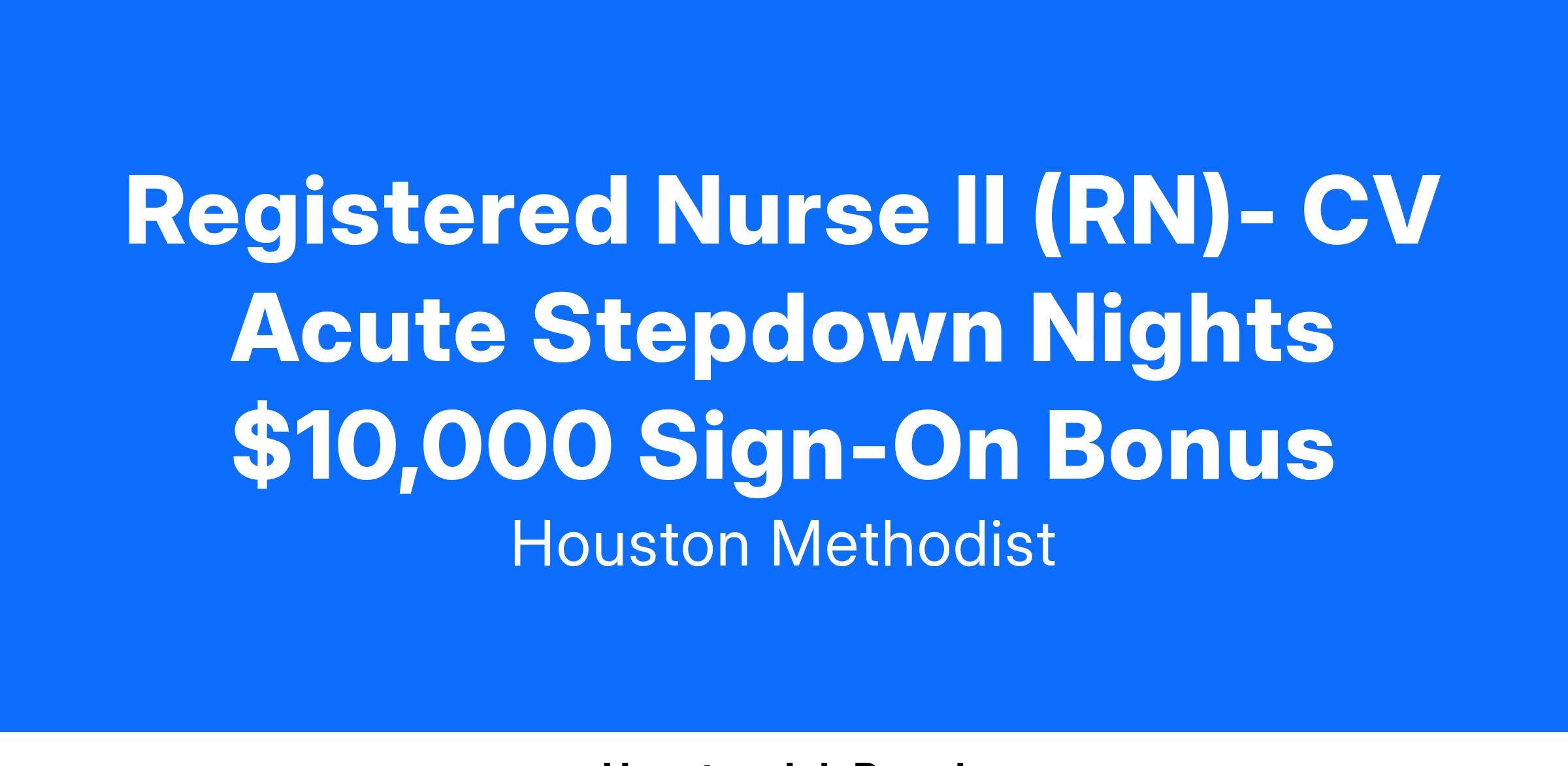 Registered Nurse II (RN)- CV Acute Stepdown Nights $10,000 Sign-On Bonus