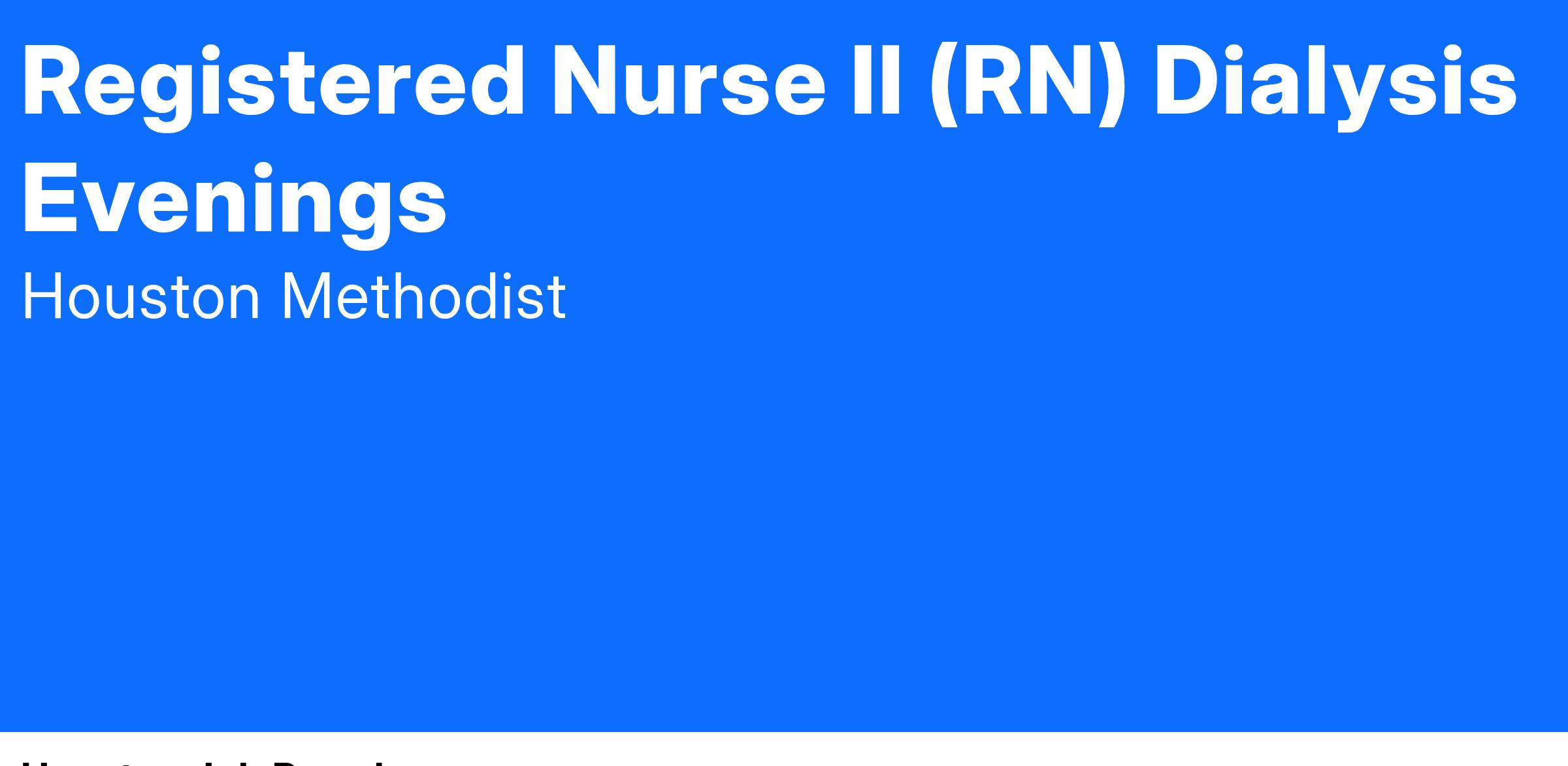 Registered Nurse II (RN) Dialysis Evenings