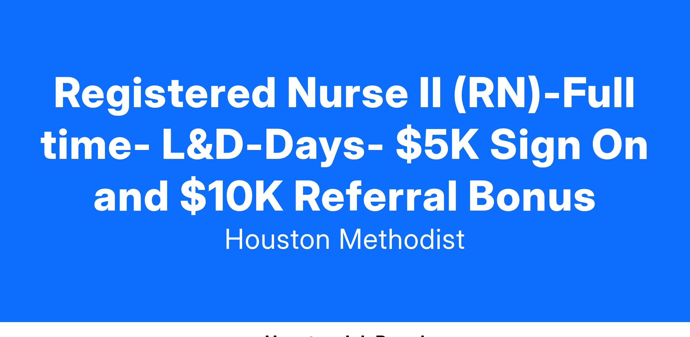 Registered Nurse II (RN)-Full time- L&D-Days- $5K Sign On and $10K Referral Bonus