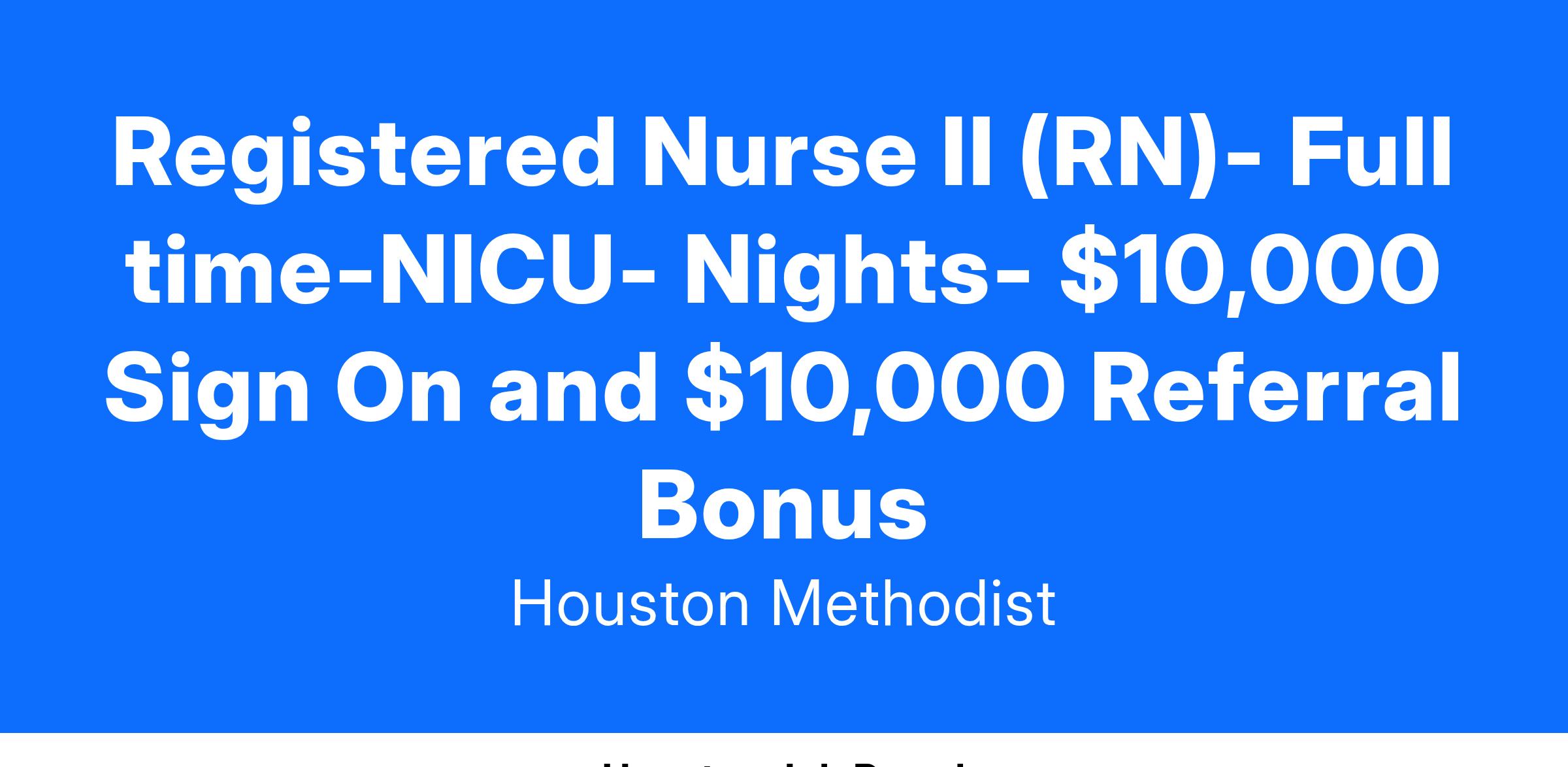 Registered Nurse II (RN)- Full time-NICU- Nights- $10,000 Sign On and $10,000 Referral Bonus