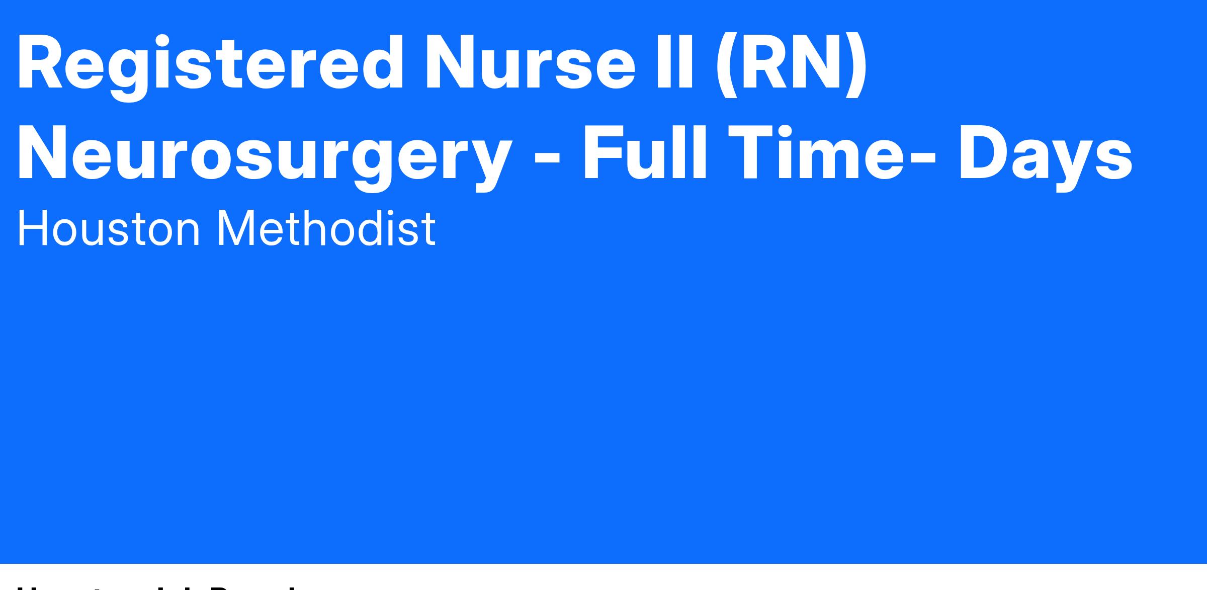 At Houston Methodist, the Registered Nurse (RN) II position is a licensed staff nurse, an experienced clinician, functions at the Competent to Proficient stage of Benner's model of clinical practice. The RN II position provides professional nursing care to a diverse patient population, conducts nursing assessments, assists with exams and treatment, patient education, and maintenance of medical records. The RN II position provides direct patient care effectively and efficiently which may include patients with varied and complex needs. This position communicates and collaborates with the physicians and interprofessional health care team to facilitate, coordinate and maintain compassionate, efficient, quality care and achievement of desired treatment outcomes. The RN II position demonstrates clinical competence when providing care, using technology, administering medications, performing procedures and managing emergencies, acting as a patient and family advocate in order to monitor and maintain patient rights. This position assumes leadership roles with progressive responsibility including but not limited to participating in or leading unit and shared governance initiatives, serving as charge nurse or preceptor to students or new employees, and possibly contributing to service line or hospital-wide initiatives in partnership with management.