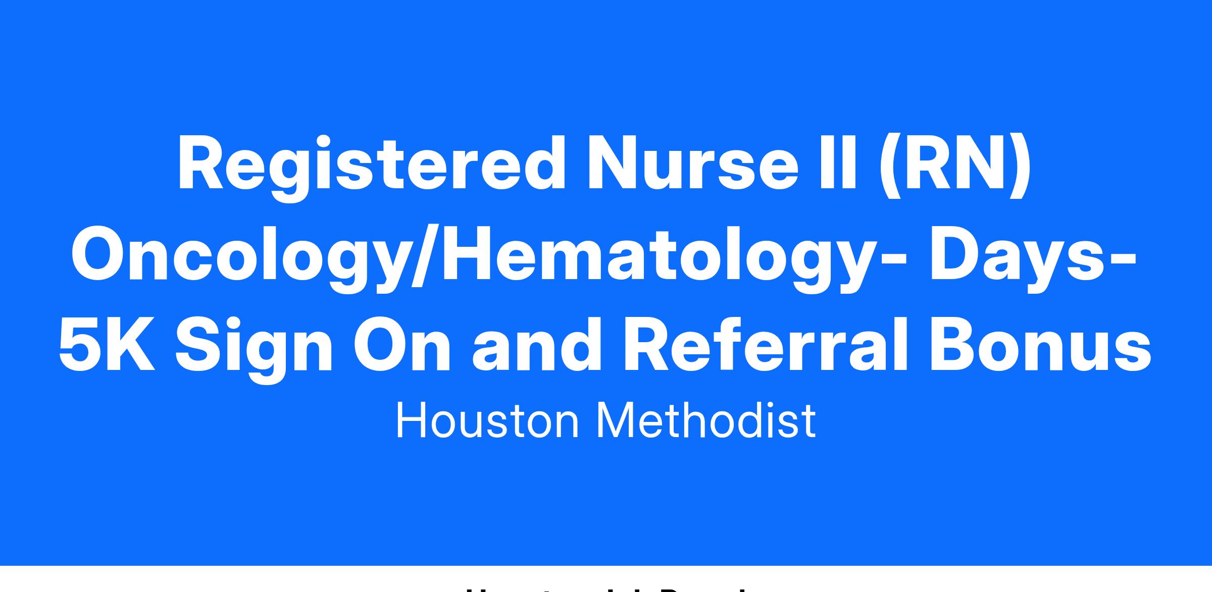 Registered Nurse II (RN) Oncology/Hematology- Days- 5K Sign On and Referral Bonus