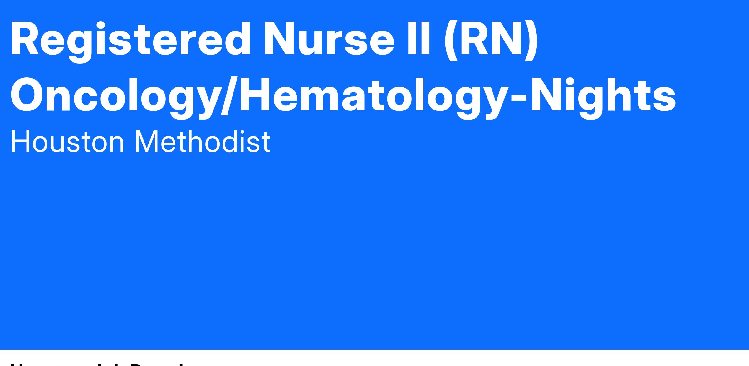 At Houston Methodist, the Registered Nurse (RN) II position a licensed staff nurse, an experienced clinician, functions at the Competent to Proficient stage of Benner's model of clinical practice. The RN II position is responsible for providing professional nursing care to a diverse patient population, conducting nursing assessments, assisting with exams and treatment, patient education, and maintenance of medical records. The RN II position provides direct patient care effectively and efficiently which may include patients with varied and complex needs. This position communicates and collaborates with the physicians and interprofessional health care team to facilitate, coordinate, and maintain compassionate, efficient, quality care and achievement of desired treatment outcomes. The RN II position demonstrates clinical competence when providing care, using technology, administering medications, performing procedures, and managing emergencies, acting as a patient and family advocate in order to monitor and maintain patient rights. This position assumes leadership roles with progressive responsibility including but not limited to participating in or leading unit and shared governance initiatives, serving as charge nurse or preceptor to students or new employees, and possibly contributing to service line or hospital-wide initiatives in partnership with management.