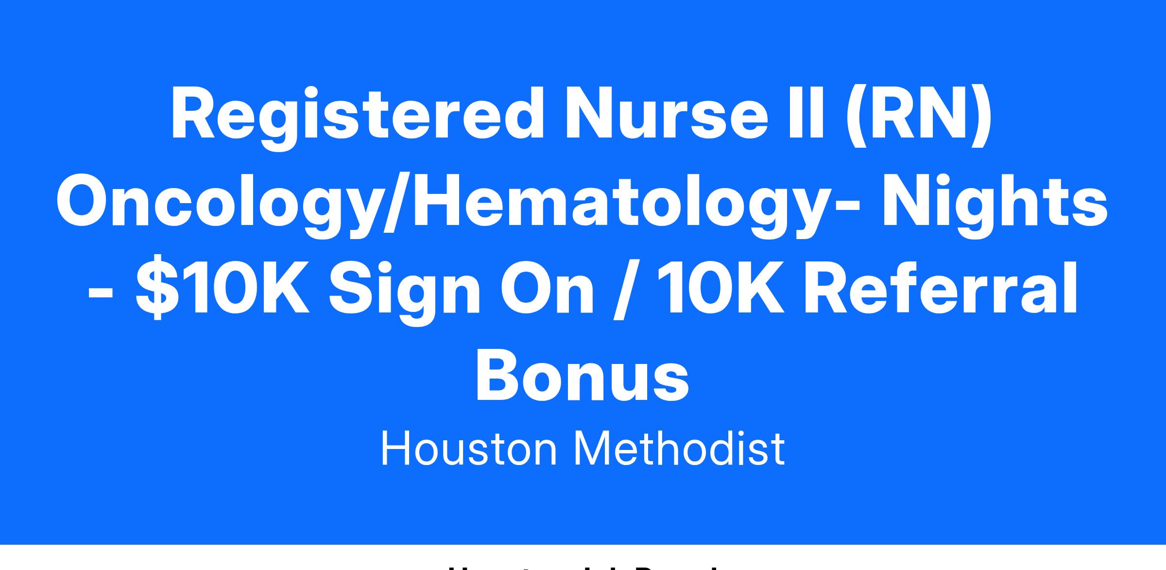 Registered Nurse II (RN) Oncology/Hematology- Nights - $10K Sign On / 10K Referral Bonus