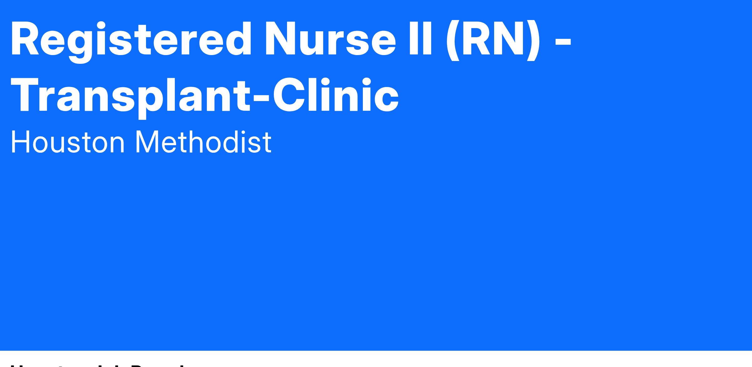 At Houston Methodist, the Registered Nurse (RN) II position a licensed staff nurse, an experienced clinician, functions at the Competent to Proficient stage of Benner's model of clinical practice. The RN II position is responsible for providing professional nursing care to a diverse patient population, conducting nursing assessments, assisting with exams and treatment, patient education, and maintenance of medical records. The RN II position provides direct patient care effectively and efficiently which may include patients with varied and complex needs. This position communicates and collaborates with the physicians and interprofessional health care team to facilitate, coordinate, and maintain compassionate, efficient, quality care and achievement of desired treatment outcomes. The RN II position demonstrates clinical competence when providing care, using technology, administering medications, performing procedures, and managing emergencies, acting as a patient and family advocate in order to monitor and maintain patient rights. This position assumes leadership roles with progressive responsibility including but not limited to participating in or leading unit and shared governance initiatives, serving as charge nurse or preceptor to students or new employees, and possibly contributing to service line or hospital-wide initiatives in partnership with management.