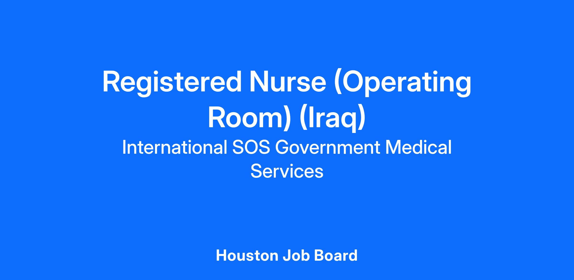 The Operating Room (OR) Registered Nurse (RN) in this position will represent International SOS Government Medical Services, Inc. and will provide comprehensive health services to DOS, DOD, and contractor personnel stationed in Iraq. The OR RN will use a holistic approach to care for the patients requiring acute medical or surgical interventions. Nurses will be accountable clinically for ensuring nursing care compliance within accepted standards of care and clinical practice. Nurses will use clinical judgment in assessing, planning, implementing, documenting, and evaluating patient care in the pre-operative, surgical and post-operative environments where life-threatening disease or injury requires close monitoring and at times quick intervention. The Nurse functions both dependently and independently within guidance and direction from the Nurse Manager/designee.