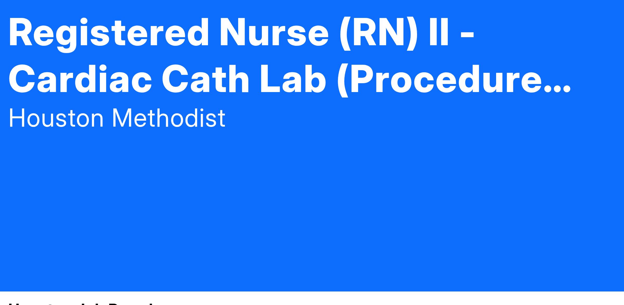 Registered Nurse (RN) II - Cardiac Cath Lab (Procedure Nurse) - Full Time, Days