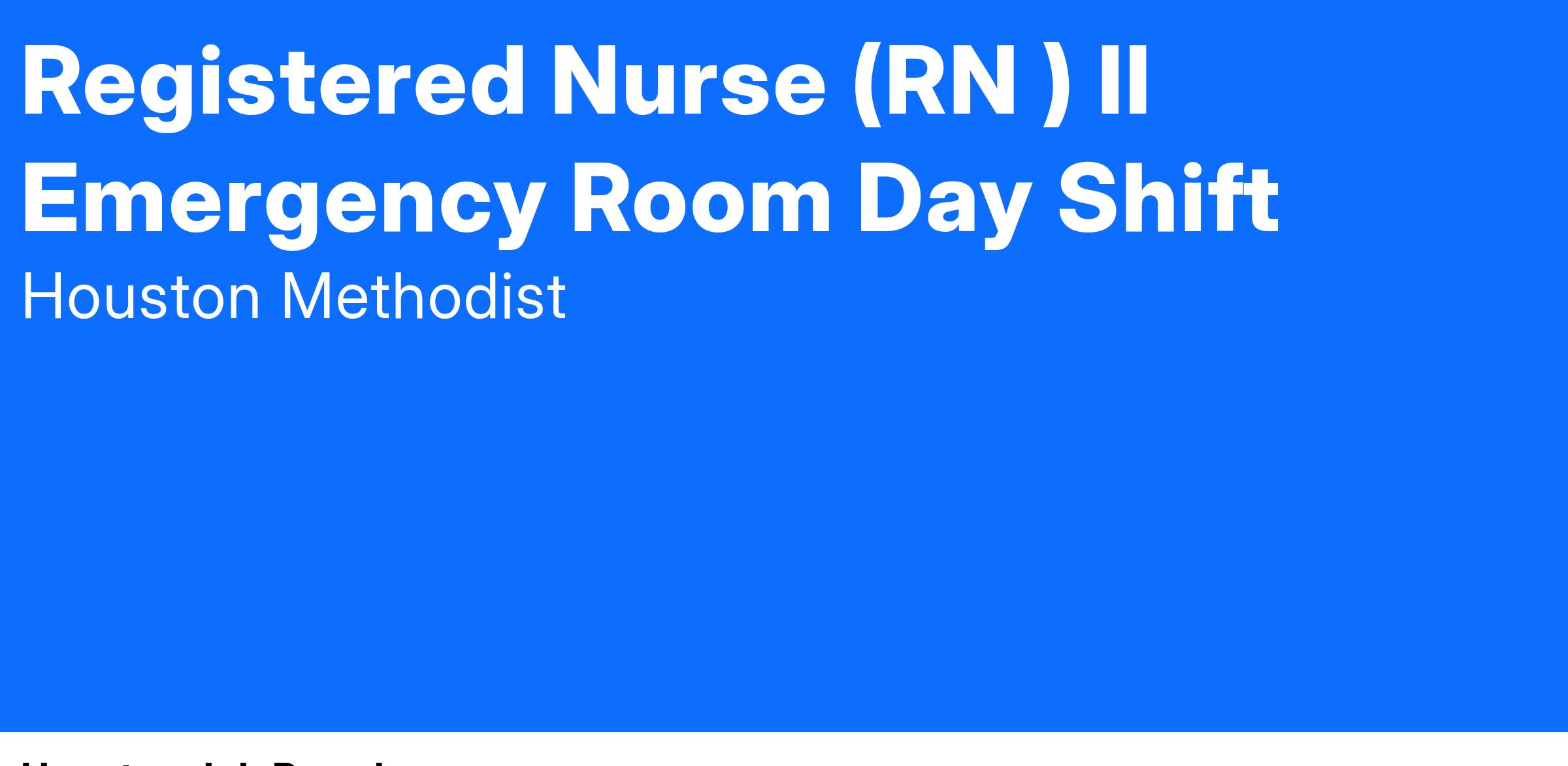 Registered Nurse (RN ) II Emergency Room Day Shift