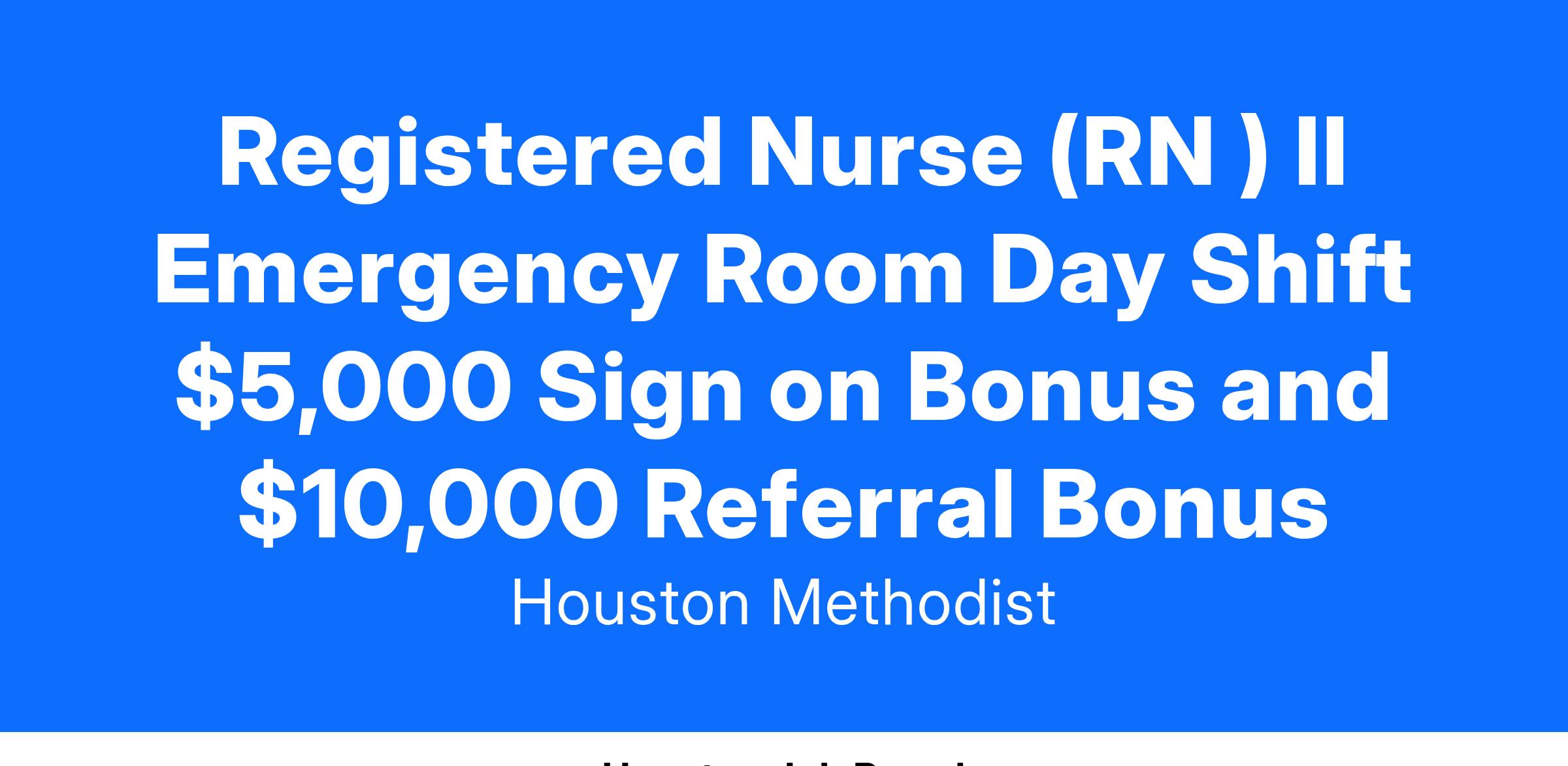 Registered Nurse (RN ) II Emergency Room Day Shift $5,000 Sign on Bonus and $10,000 Referral Bonus