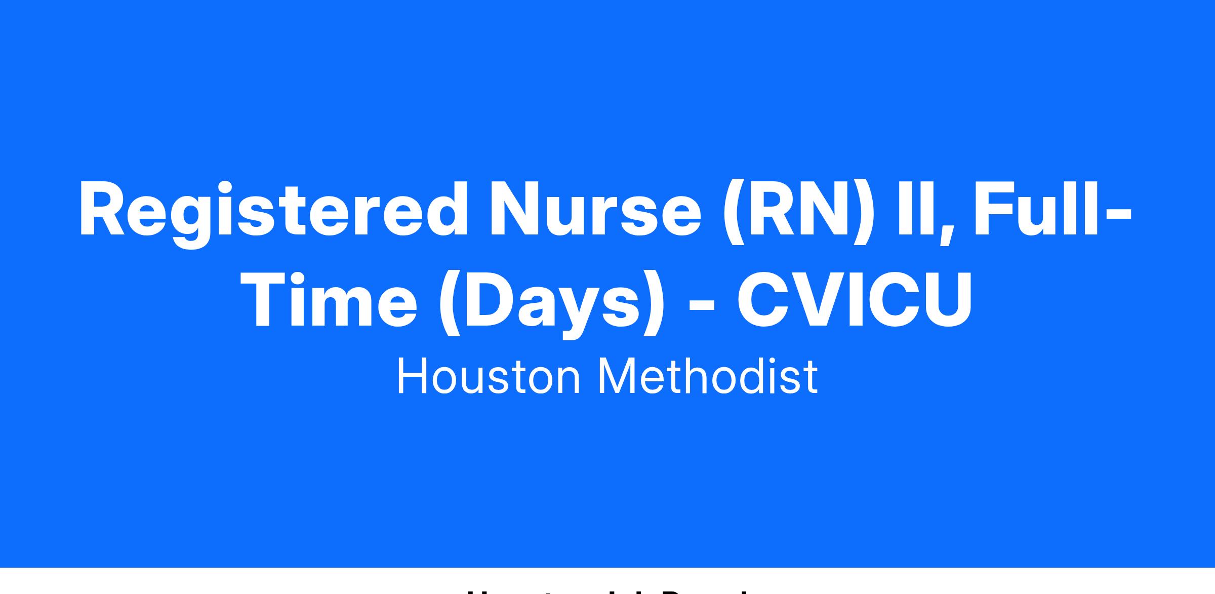 Registered Nurse (RN) II, Full-Time (Days) - CVICU