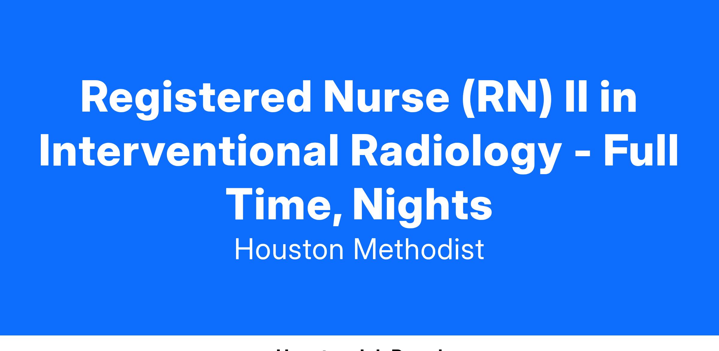 Registered Nurse (RN) II in Interventional Radiology - Full Time, Nights