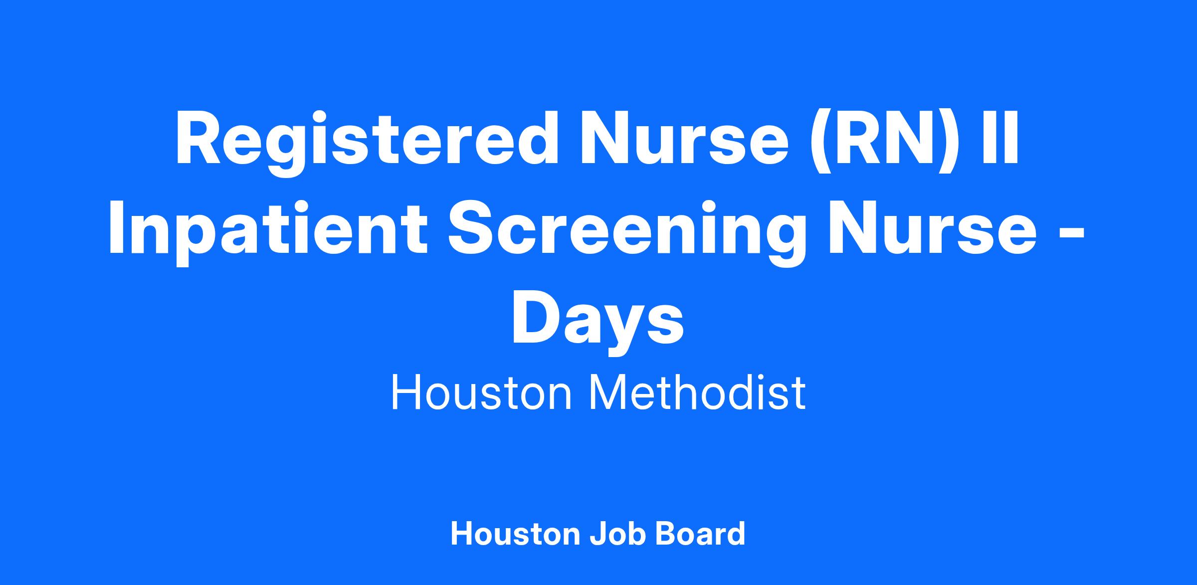 At Houston Methodist, the Registered Nurse (RN) II position a licensed staff nurse, an experienced clinician, functions at the Competent to Proficient stage of Benner's model of clinical practice. The RN II position is responsible for providing professional nursing care to a diverse patient population, conducting nursing assessments, assisting with exams and treatment, patient education, and maintenance of medical records. The RN II position provides direct patient care effectively and efficiently which may include patients with varied and complex needs. This position communicates and collaborates with the physicians and interprofessional health care team to facilitate, coordinate, and maintain compassionate, efficient, quality care and achievement of desired treatment outcomes. The RN II position demonstrates clinical competence when providing care, using technology, administering medications, performing procedures, and managing emergencies, acting as a patient and family advocate in order to monitor and maintain patient rights. This position assumes leadership roles with progressive responsibility including but not limited to participating in or leading unit and shared governance initiatives, serving as charge nurse or preceptor to students or new employees, and possibly contributing to service line or hospital-wide initiatives in partnership with management.