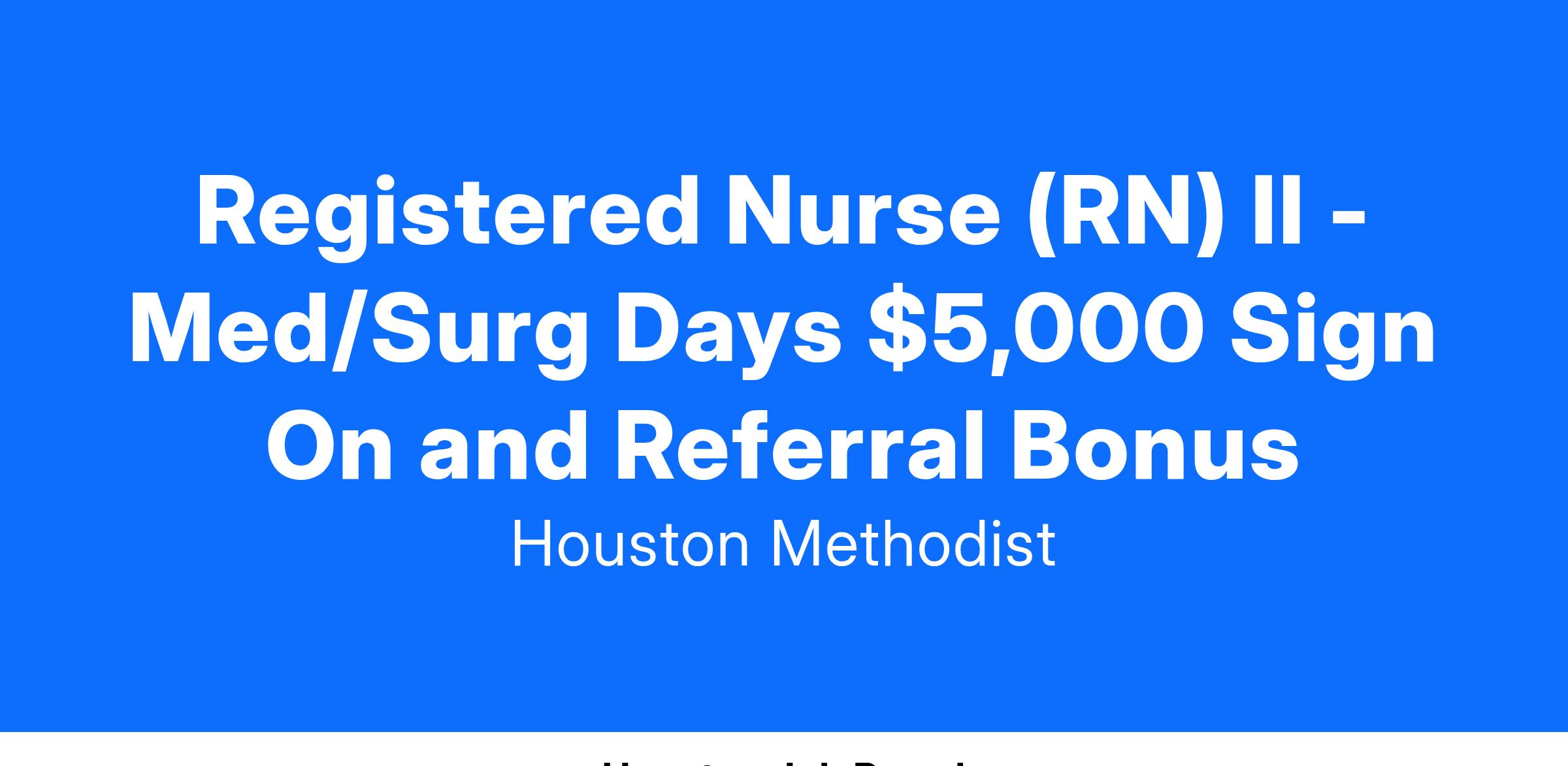 Registered Nurse (RN) II - Med/Surg Days $5,000 Sign On and Referral Bonus