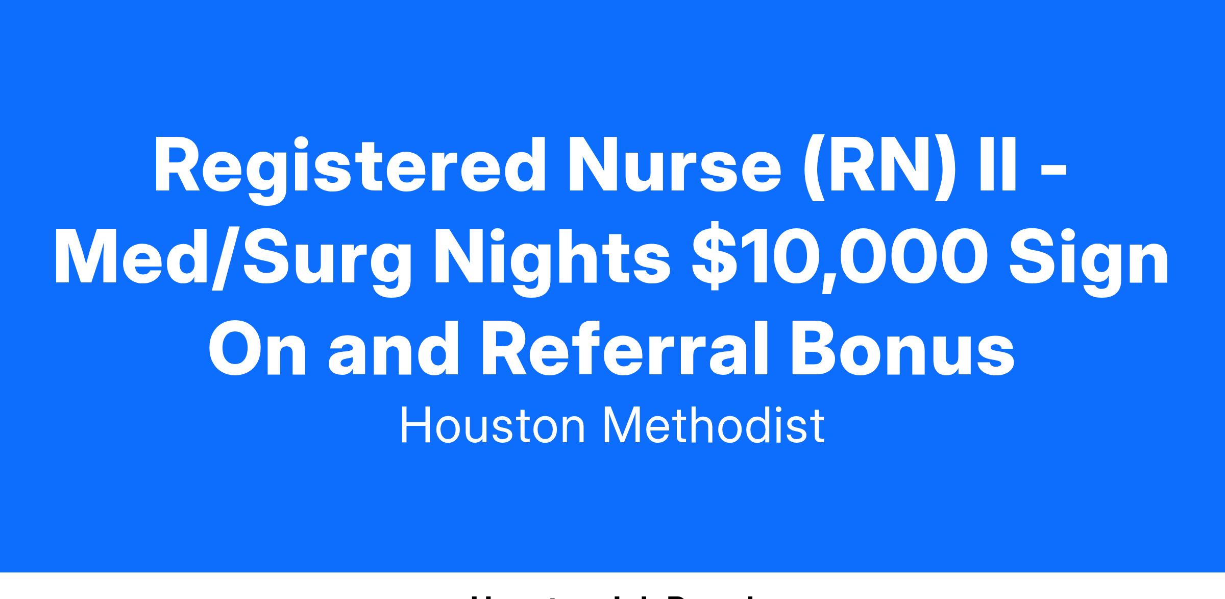 Registered Nurse (RN) II - Med/Surg Nights $10,000 Sign On and Referral Bonus