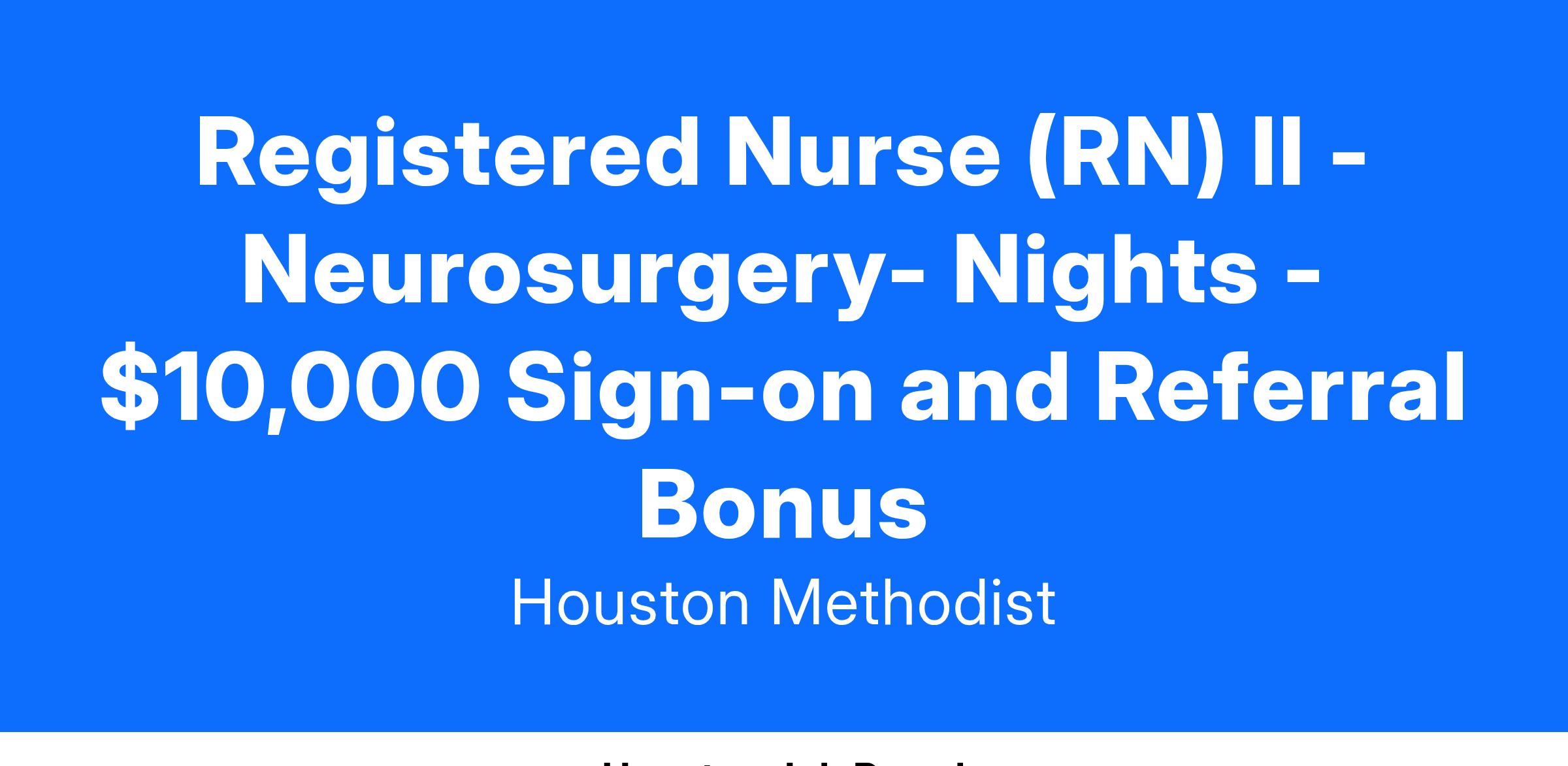 Registered Nurse (RN) II - Neurosurgery- Nights - $10,000 Sign-on and Referral Bonus