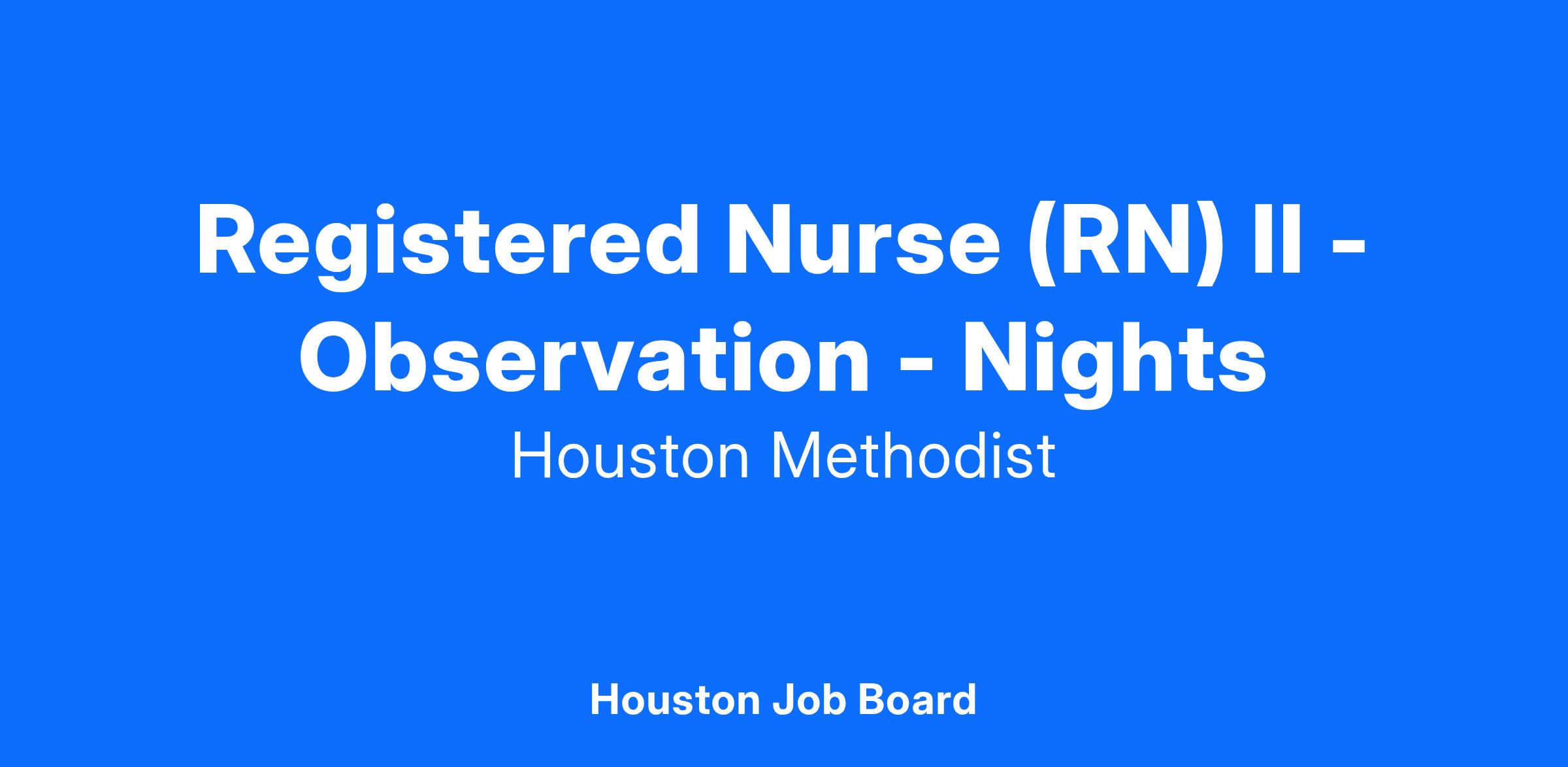 At Houston Methodist, the Registered Nurse (RN) II position a licensed staff nurse, an experienced clinician, functions at the Competent to Proficient stage of Benner's model of clinical practice. The RN II position is responsible for providing professional nursing care to a diverse patient population, conducting nursing assessments, assisting with exams and treatment, patient education, and maintenance of medical records. The RN II position provides direct patient care effectively and efficiently which may include patients with varied and complex needs. This position communicates and collaborates with the physicians and interprofessional health care team to facilitate, coordinate, and maintain compassionate, efficient, quality care and achievement of desired treatment outcomes. The RN II position demonstrates clinical competence when providing care, using technology, administering medications, performing procedures, and managing emergencies, acting as a patient and family advocate in order to monitor and maintain patient rights. This position assumes leadership roles with progressive responsibility including but not limited to participating in or leading unit and shared governance initiatives, serving as charge nurse or preceptor to students or new employees, and possibly contributing to service line or hospital-wide initiatives in partnership with management.