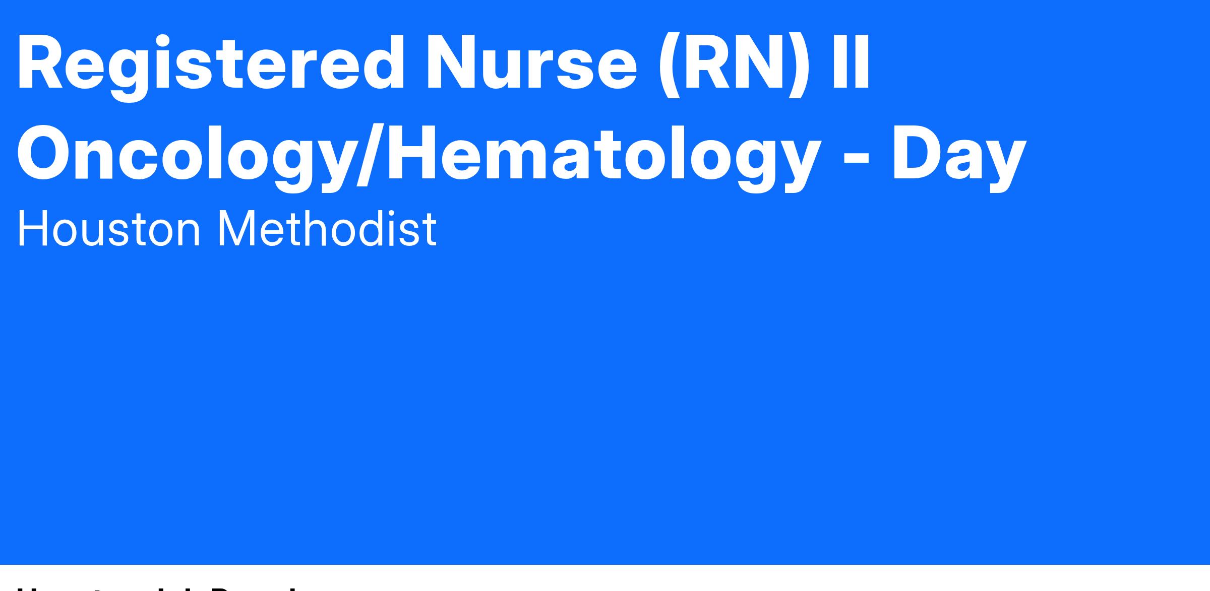At Houston Methodist, the Registered Nurse (RN) II position is a licensed staff nurse, an experienced clinician, functions at the Competent to Proficient stage of Benner's model of clinical practice. The RN II position provides professional nursing care to a diverse patient population, conducts nursing assessments, assists with exams and treatment, patient education, and maintenance of medical records. The RN II position provides direct patient care effectively and efficiently which may include patients with varied and complex needs. This position communicates and collaborates with the physicians and interprofessional health care team to facilitate, coordinate and maintain compassionate, efficient, quality care and achievement of desired treatment outcomes. The RN II position demonstrates clinical competence when providing care, using technology, administering medications, performing procedures and managing emergencies, acting as a patient and family advocate in order to monitor and maintain patient rights. This position assumes leadership roles with progressive responsibility including but not limited to participating in or leading unit and shared governance initiatives, serving as charge nurse or preceptor to students or new employees, and possibly contributing to service line or hospital-wide initiatives in partnership with management.