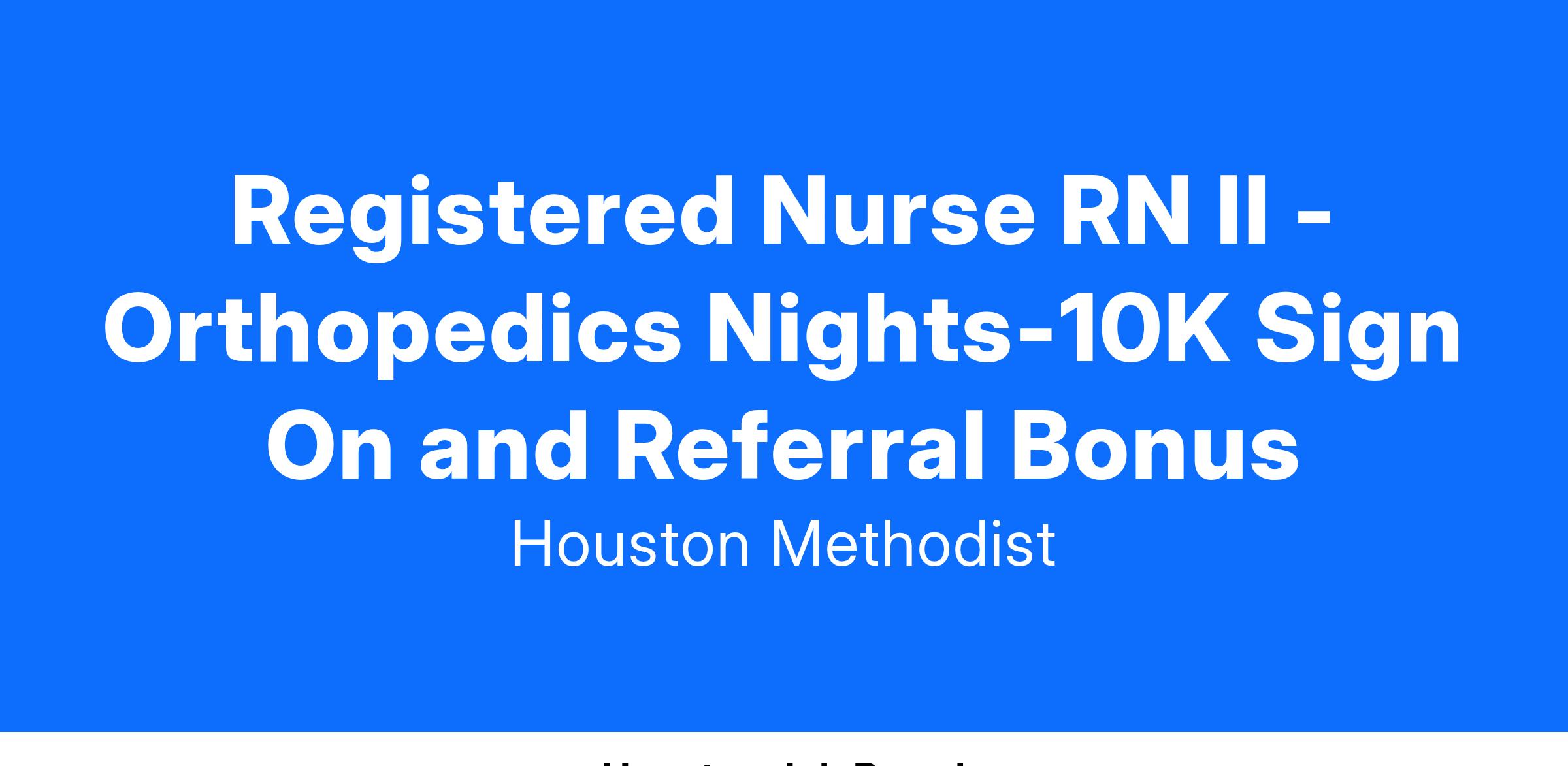 Registered Nurse RN II - Orthopedics Nights-10K Sign On and Referral Bonus