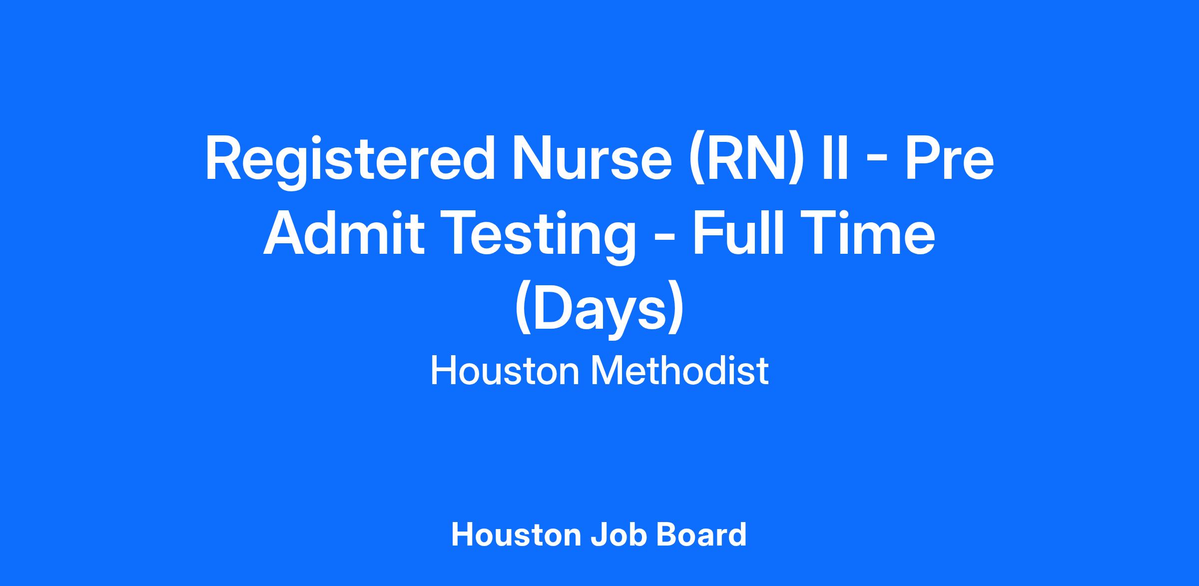 Registered Nurse (RN) II - Pre Admit Testing - Full Time (Days)