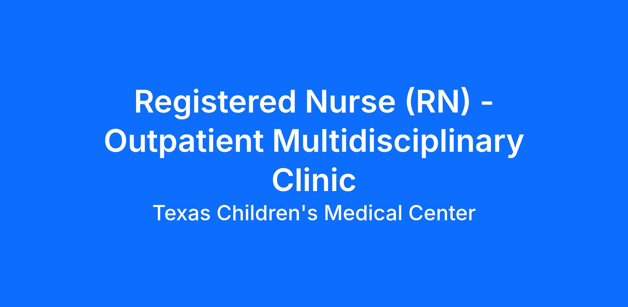 DescriptionWe are searching for a Registered Nurse (RN) at Texas Children's Outpatient Multidisciplinary Clinic — someone who works well in a fast-paced setting. In this position, you'll provide direct and telephone nursing care, health teaching, patient advocacy, supervision and coordination of care given by others, and the coordination of services required for patients outside the ambulatory care setting in a manner that is age and developmentally appropriate.