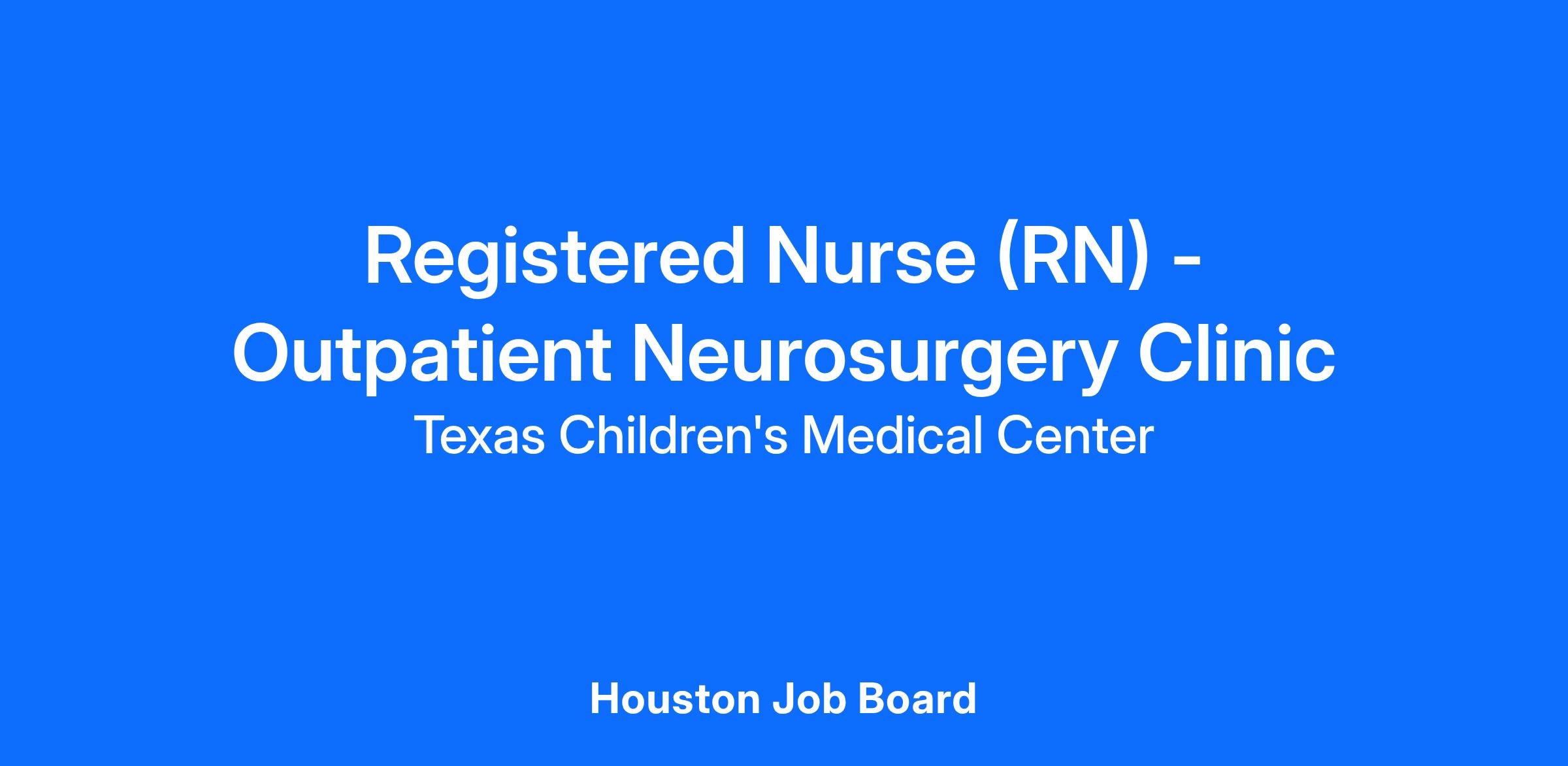 DescriptionWe are searching for a Registered Nurse (RN) at Texas Children's Outpatient Neurosurgery Clinic in The Medical Center — someone who works well in a fast-paced setting. In this position, you'll provide direct and telephone nursing care, health teaching, patient advocacy, supervision and coordination of care given by others, and the coordination of services required for patients outside the ambulatory care setting in a manner that is age and developmentally appropriate.