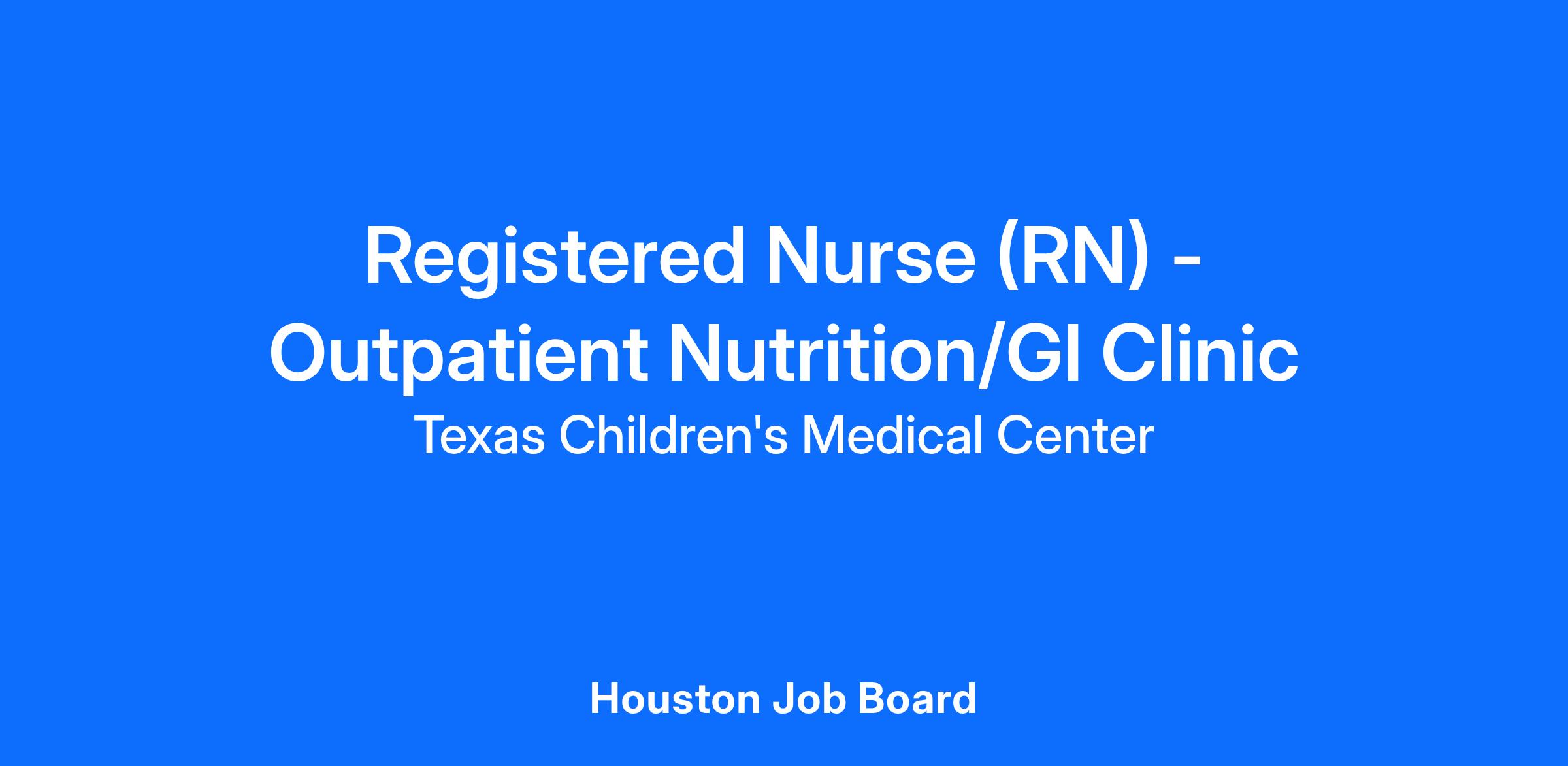 DescriptionWe are searching for a Registered Nurse (RN) at Texas Children's Outpatient Nutrition/GI Clinic in The Medical Center — someone who works well in a fast-paced setting. In this position, you'll provide direct and telephone nursing care, health teaching, patient advocacy, supervision and coordination of care given by others, and the coordination of services required for patients outside the ambulatory care setting in a manner that is age and developmentally appropriate.