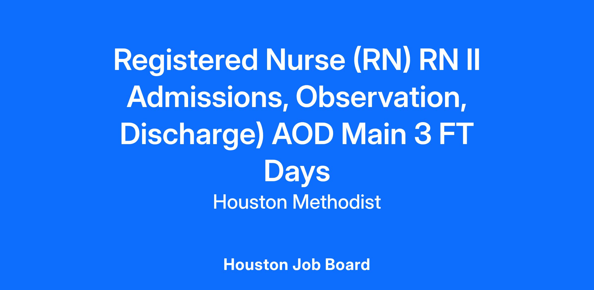 Registered Nurse (RN) RN II Admissions, Observation, Discharge) AOD Main 3 FT Days