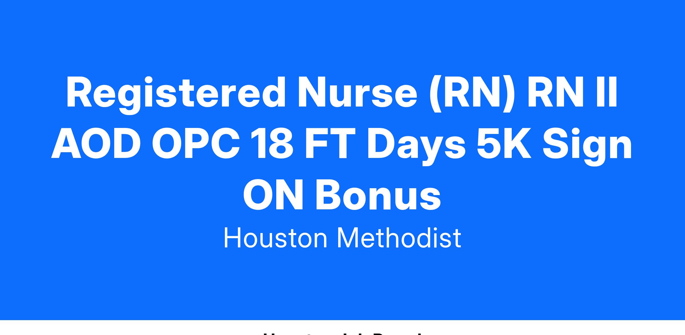 Registered Nurse (RN) RN II AOD OPC 18 FT Days 5K Sign ON Bonus