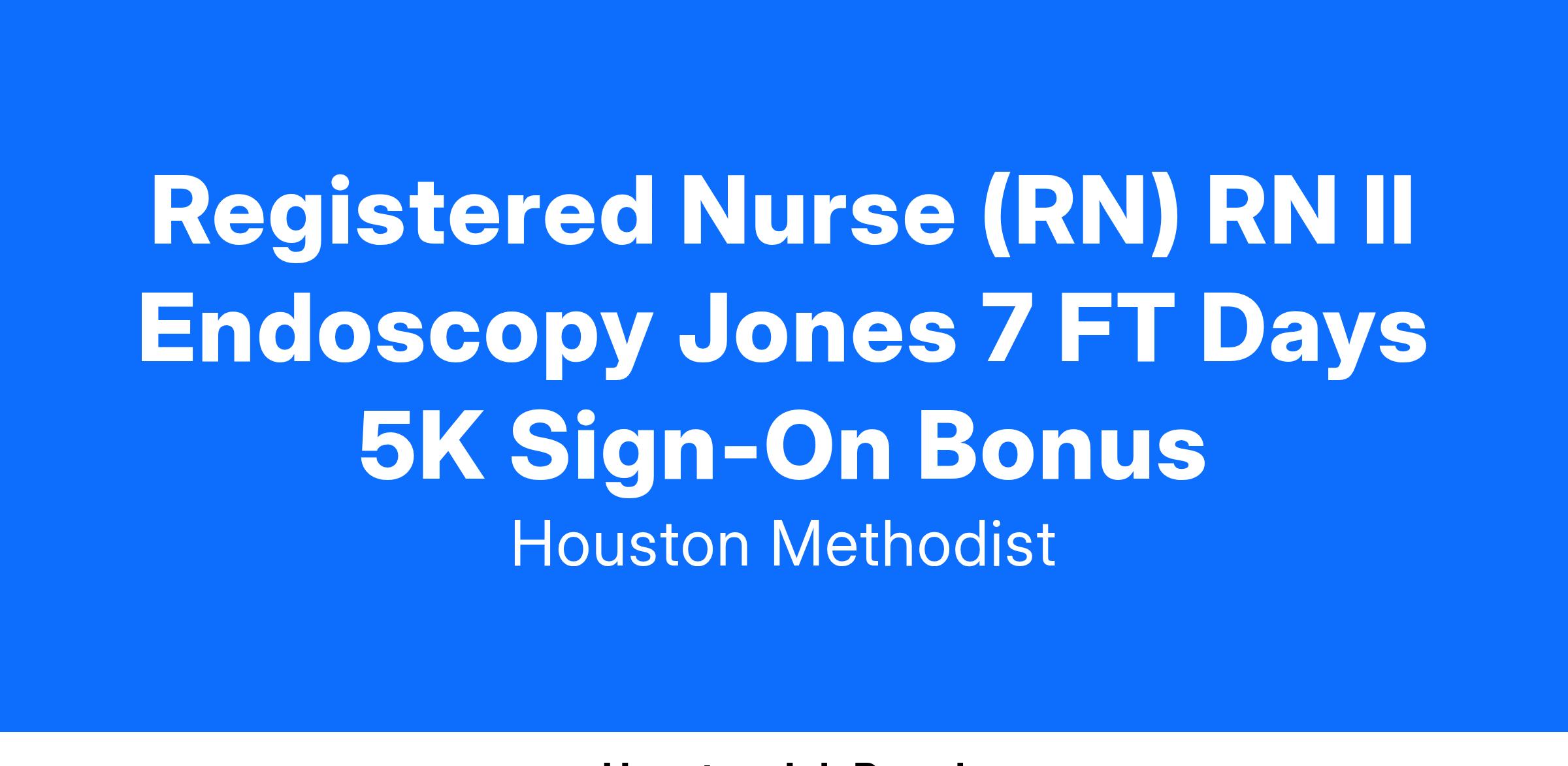 Registered Nurse (RN) RN II Endoscopy Jones 7 FT Days 5K Sign-On Bonus