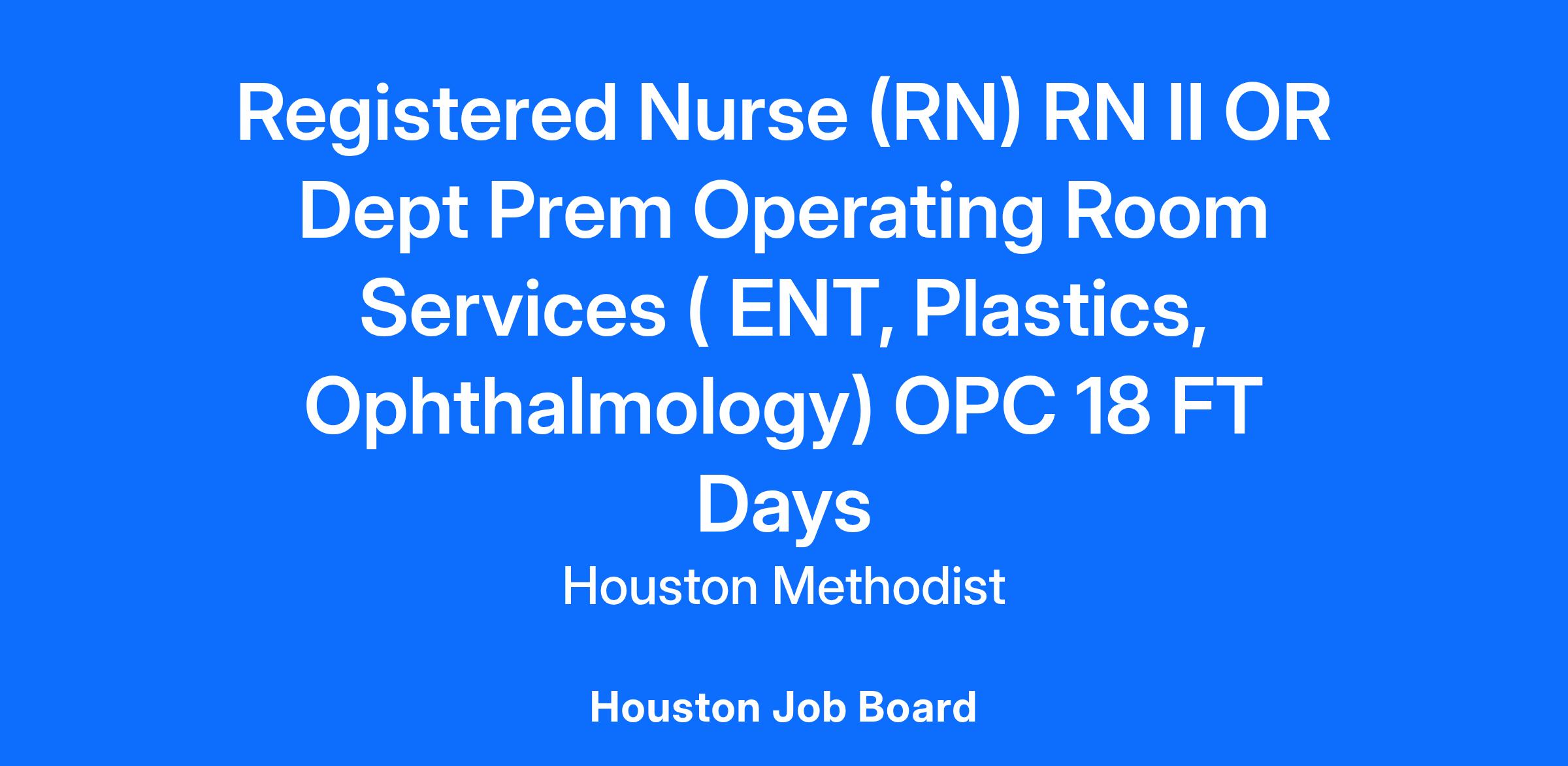 Registered Nurse (RN) RN II OR Dept Prem Operating Room Services ( ENT, Plastics, Ophthalmology) OPC 18 FT Days