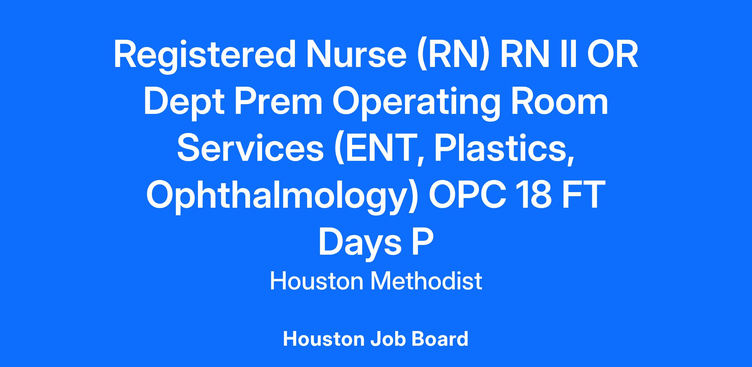 Registered Nurse (RN) RN II OR Dept Prem Operating Room Services (ENT, Plastics, Ophthalmology) OPC 18 FT Days P