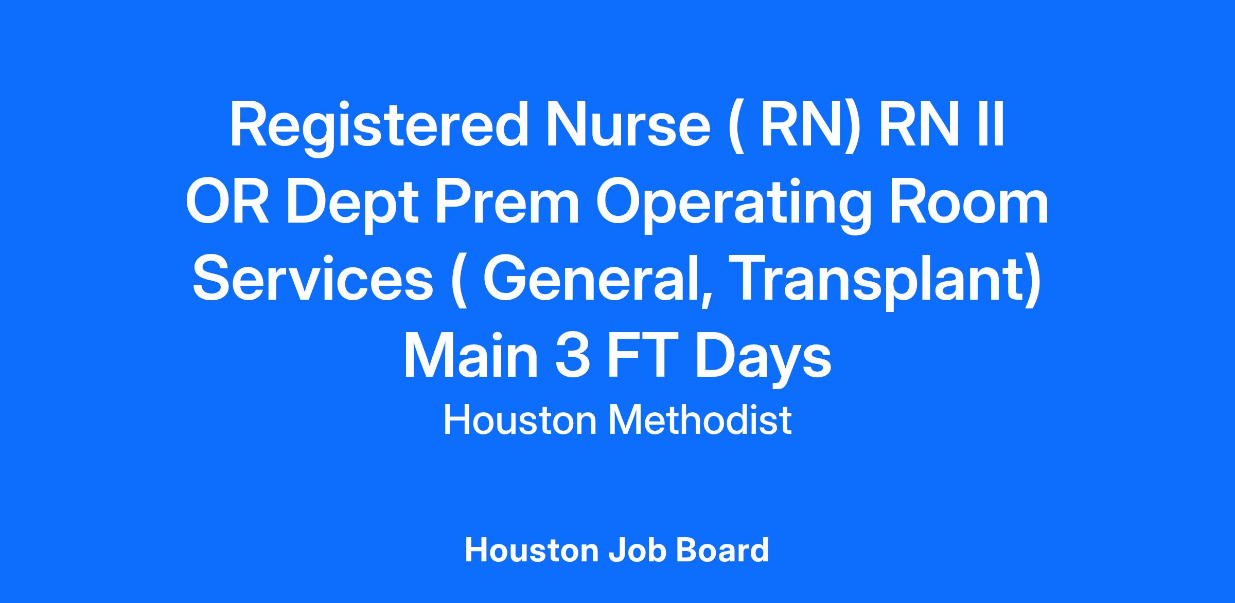 Registered Nurse ( RN) RN II OR Dept Prem Operating Room Services ( General, Transplant) Main 3 FT Days