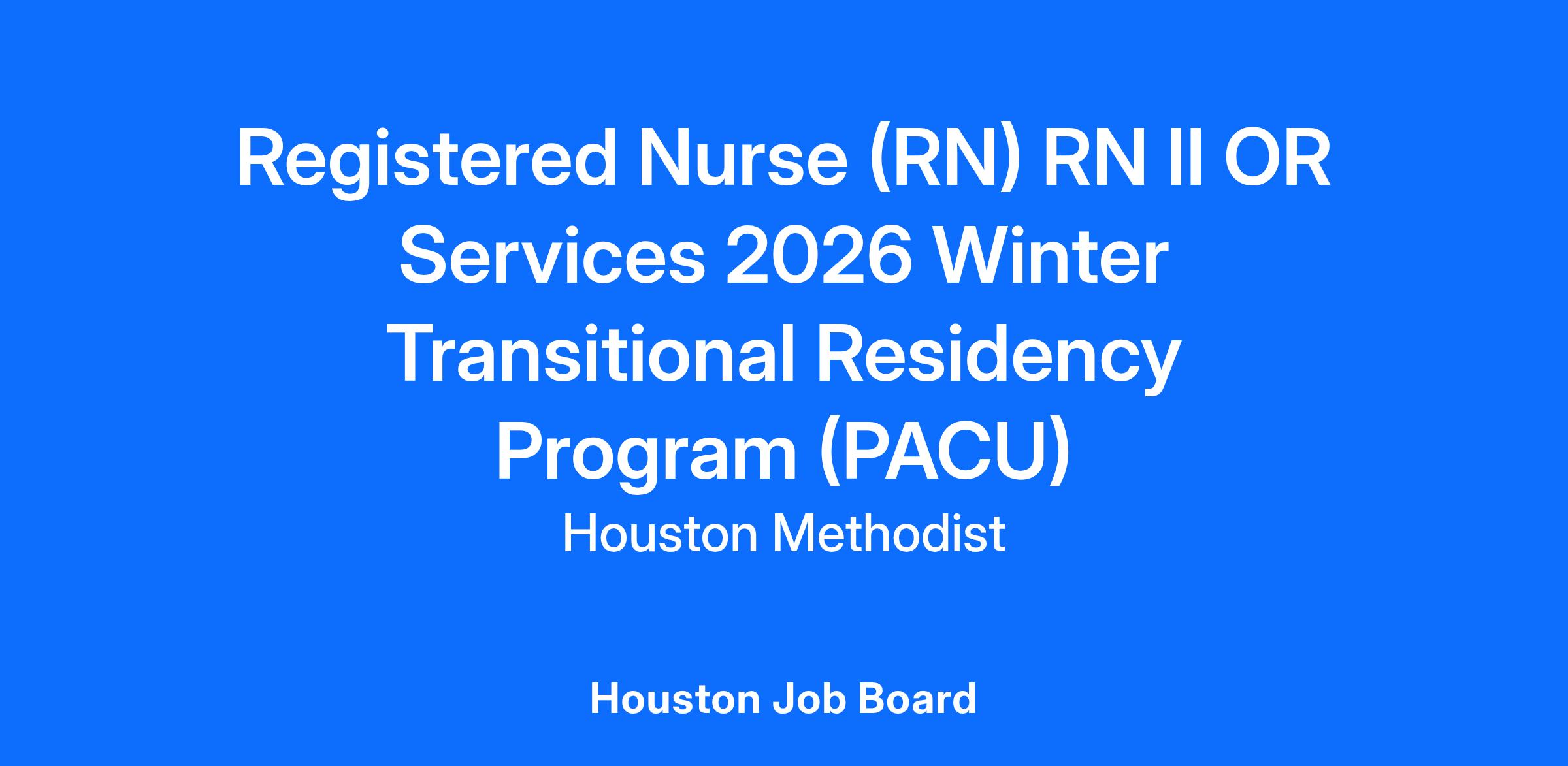 Registered Nurse (RN) RN II OR Services 2026 Winter Transitional Residency Program (PACU)