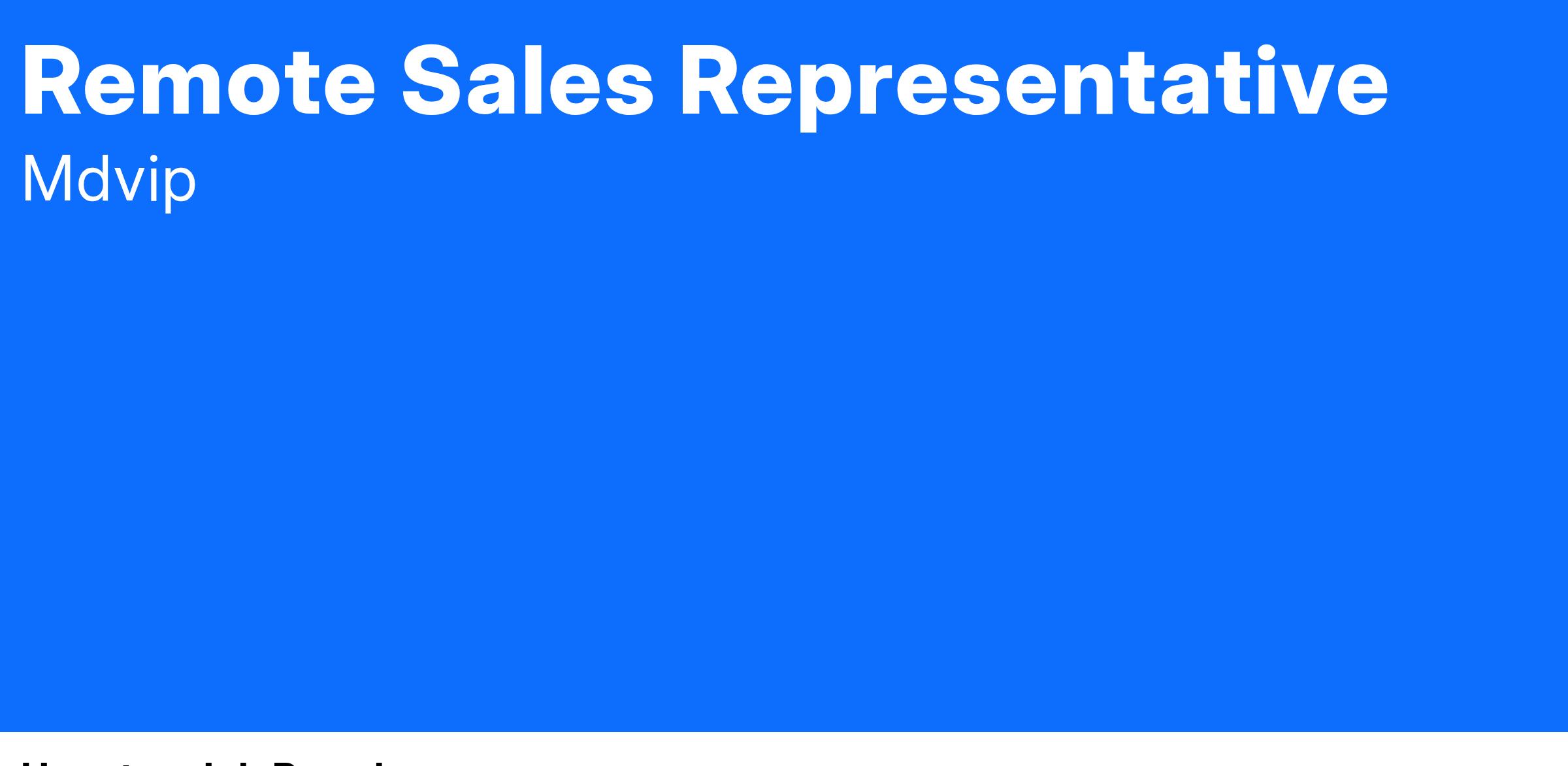 Come join an innovative leader in the healthcare industry! MDVIP is seeking remote Healthcare Phone Sales Representatives who are impassioned sales professionals who can communicate the benefits of the MDVIP program to potential members in a highly customized and consultative way.  The ideal candidate enjoys working in a fast-paced, structured environment and has excellent verbal and written communication skills. Outbound sales campaigns are structured to reach transitioning physician’s patients (not cold calling). Comprehensive initial training allows for individuals to develop sound knowledge of the company, program, and operational procedures to deliver consistent quality work.