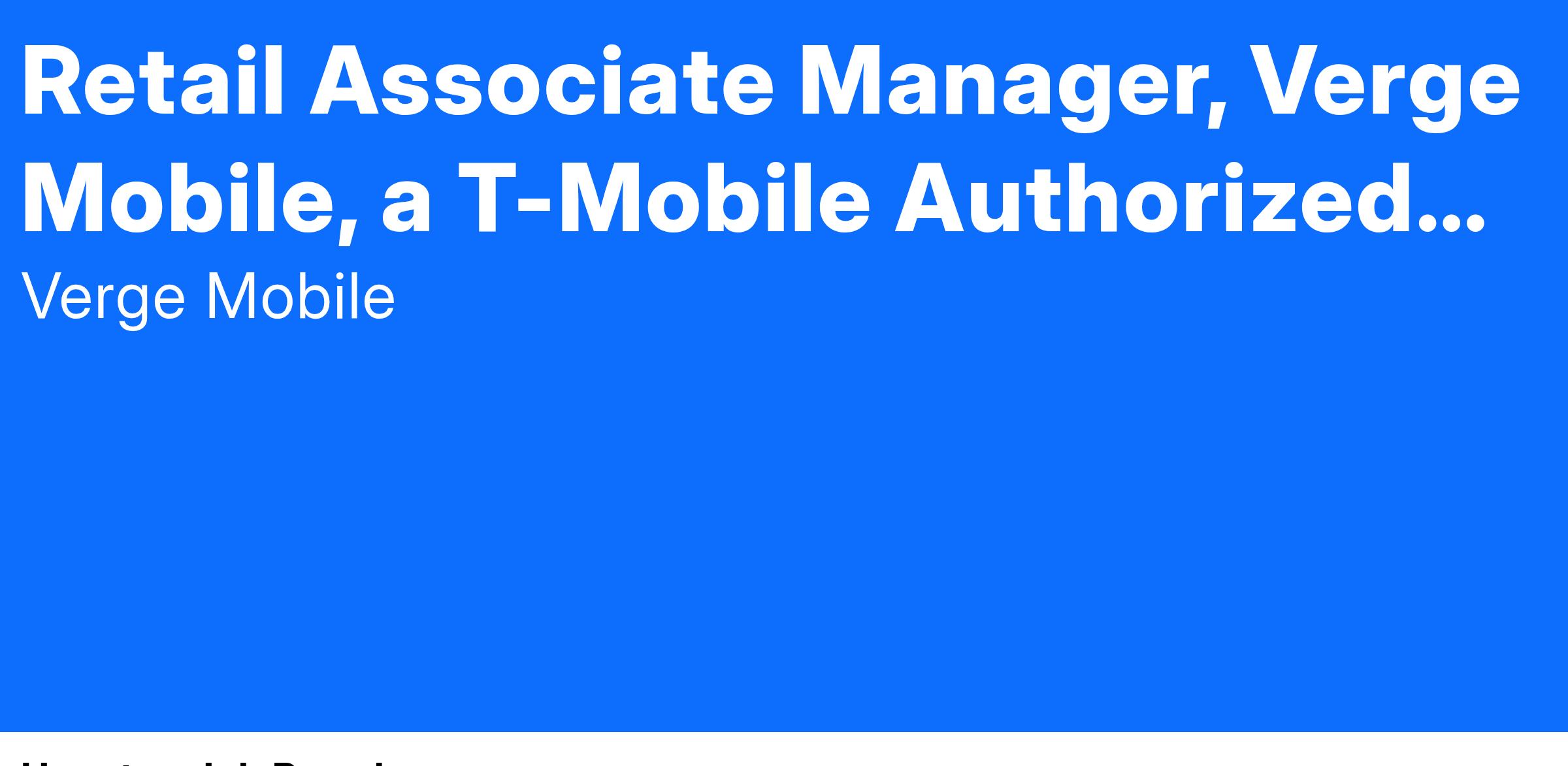 Retail Associate Manager, Verge Mobile, a T-Mobile Authorized Retailer - Houston, TX - Bilingual (Spanish) Preferred