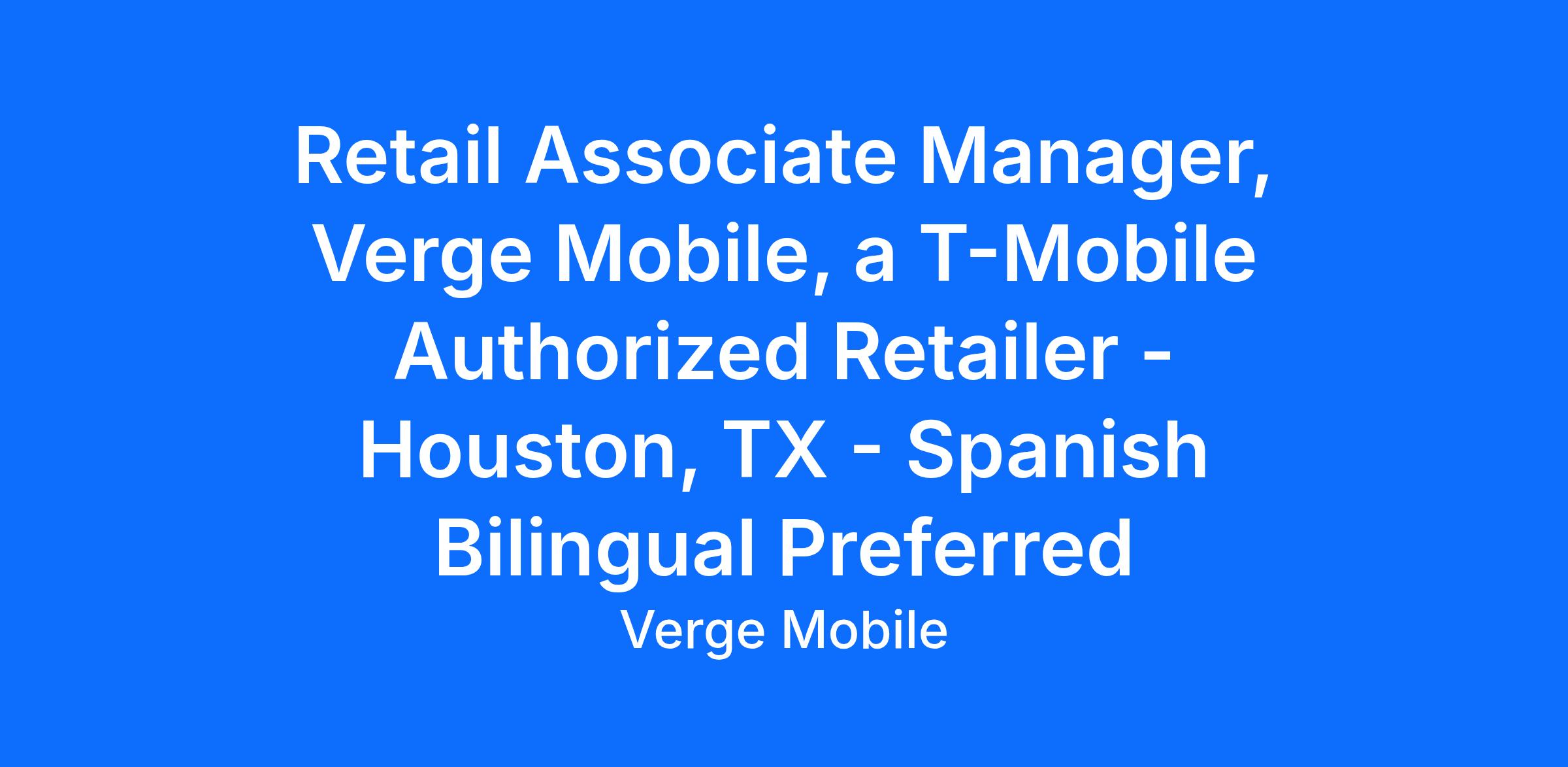 Retail Associate Manager – Verge Mobile, a T-Mobile Authorized Retailer