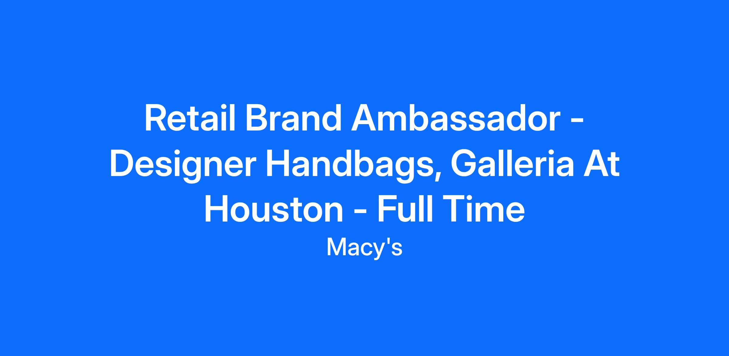 Retail Brand Ambassador - Designer Handbags, Galleria At Houston - Full Time