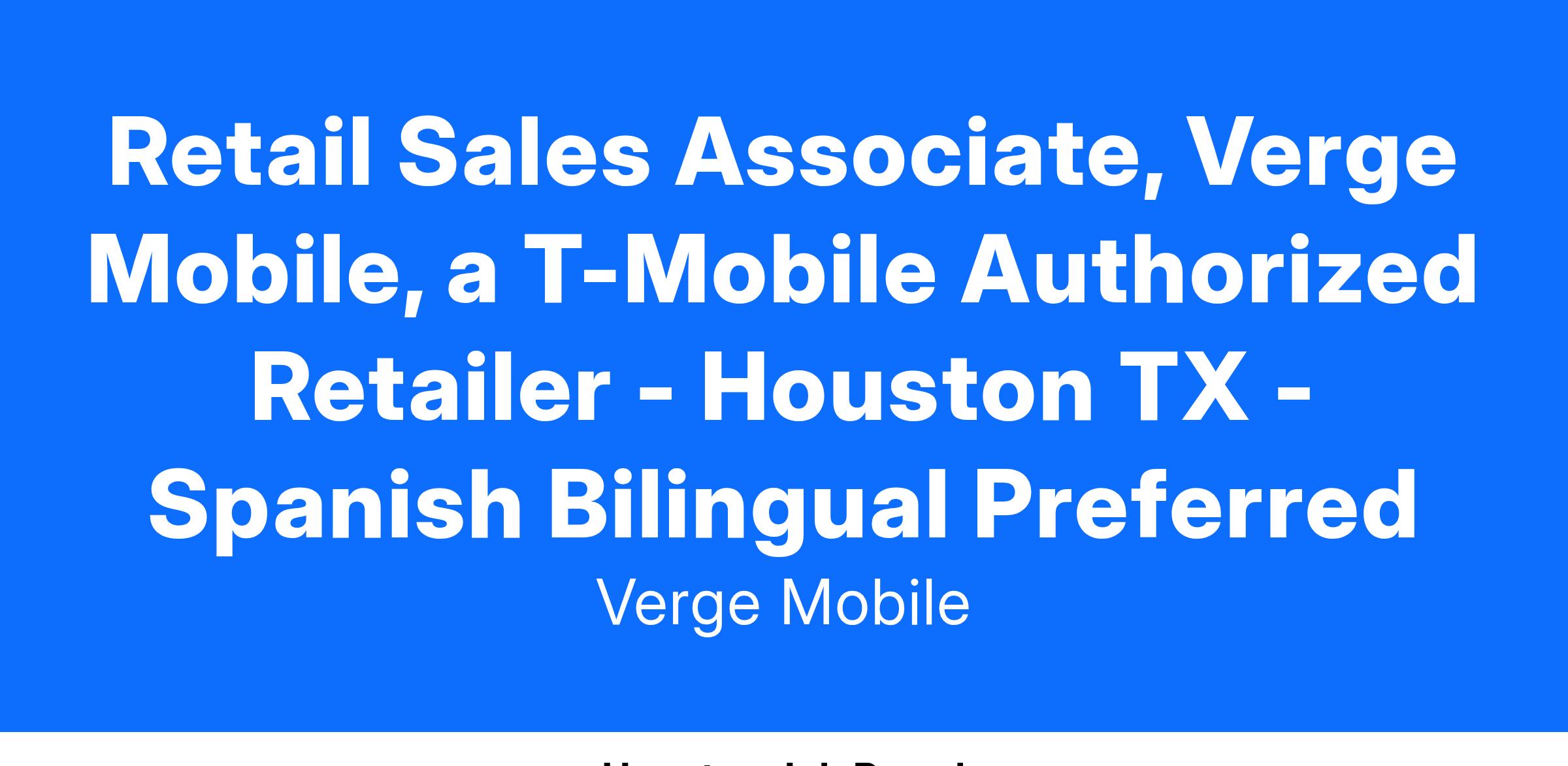 Retail Sales Associate – Verge Mobile, a T-Mobile Authorized Wireless Retailer