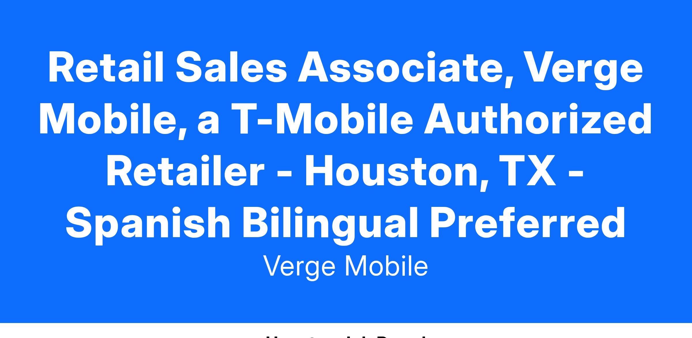 Retail Sales Associate – Verge Mobile, a T-Mobile Authorized Wireless Retailer