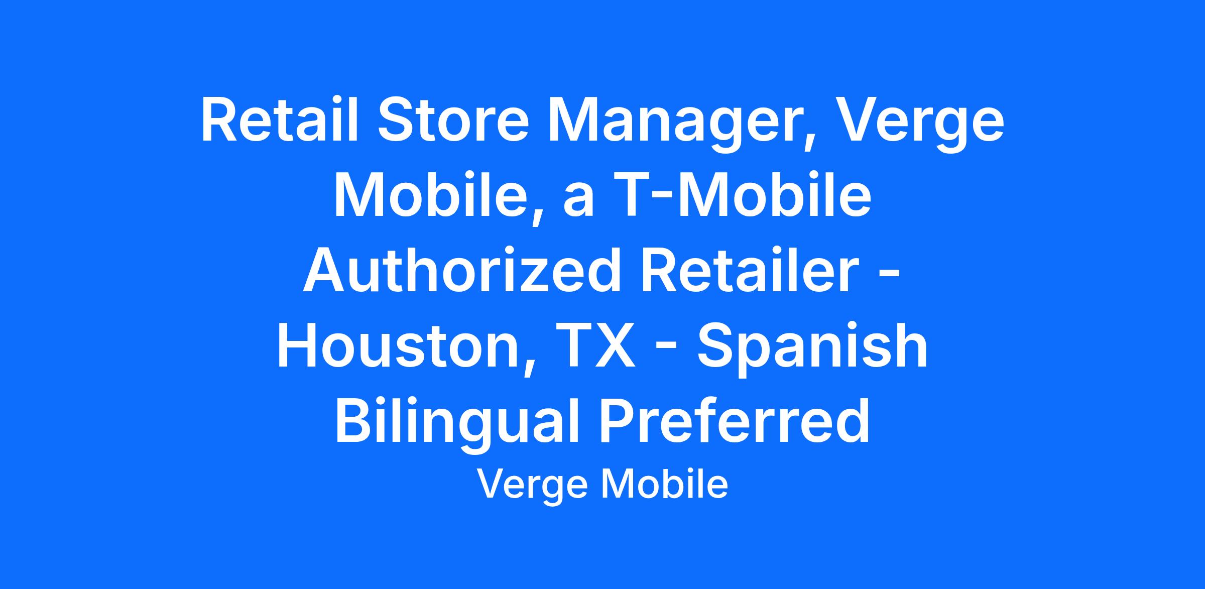 At Verge Mobile you will be a people-first leader who is ready to take charge, shake things up in the wireless retail space, and make a real difference. You will be the heartbeat of our location, driving a competitive team to new heights and create amazing customer experiences.