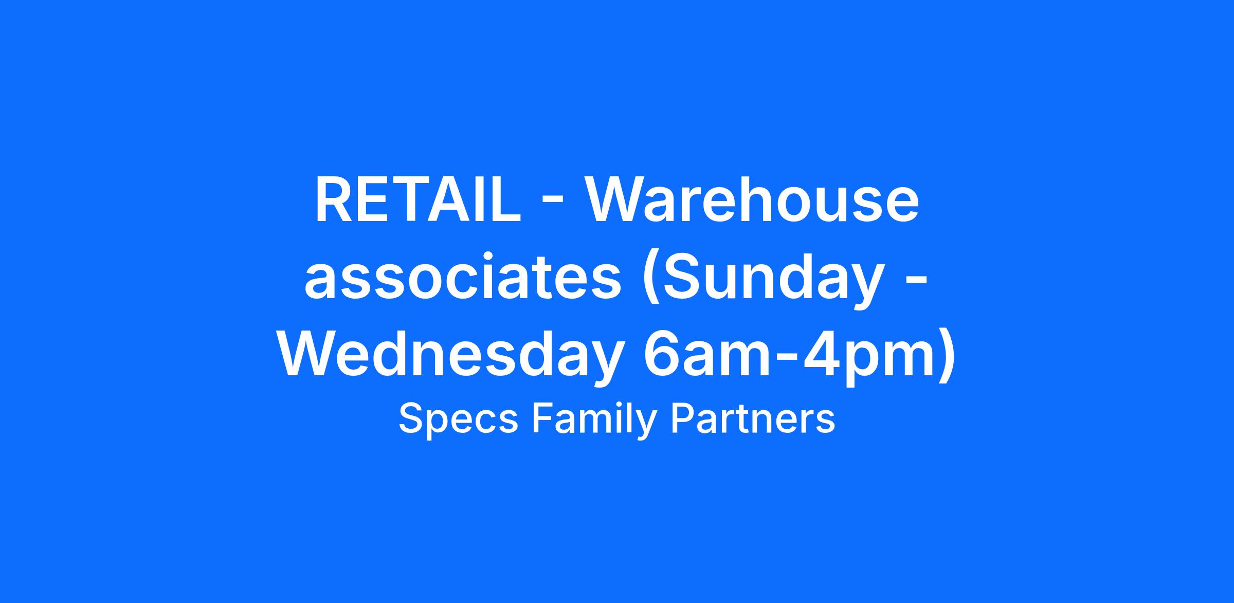 RETAIL - Warehouse associates (Sunday - Wednesday 6am-4pm)