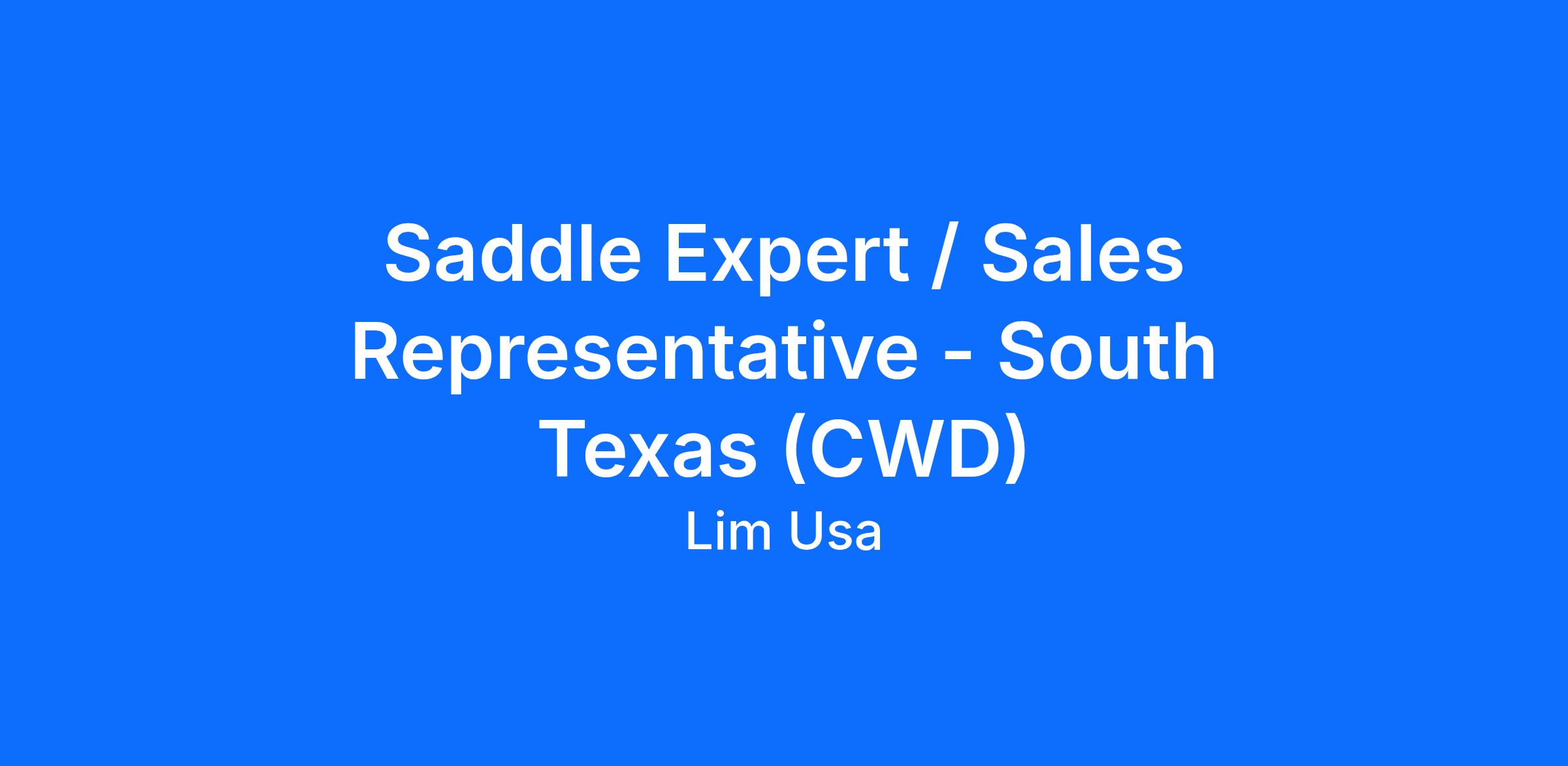 CWD is the #1 brand in French saddlery and a partner to the world's top riders, including McLain Ward, Kent Farrington, Sam Walker, Hyde Moffat, Mac Cone, Natalie Dean, Harrie Smolders, and Adrienne Sternlicht, with the growth of our cutting-edge technology in the 2GS saddle. We are currently looking for an Outside Sales Representative covering the territory of South Texas.